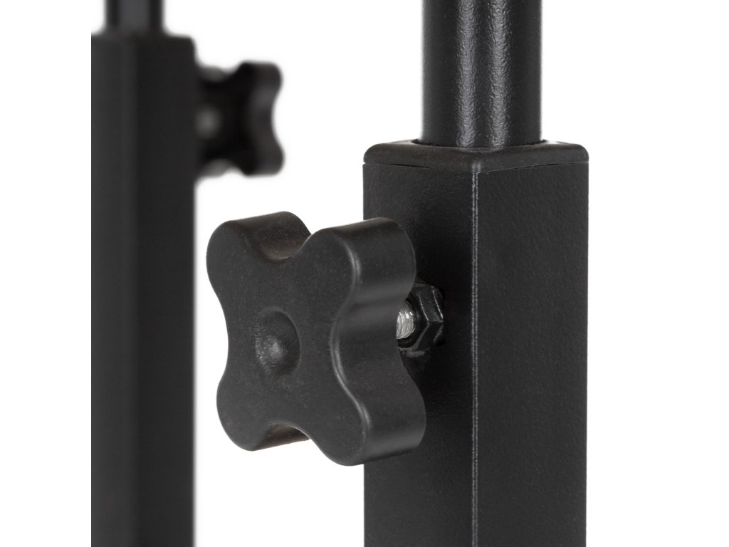 - Patru șuruburi cu butoane permit ajustarea manuală a înălțimii