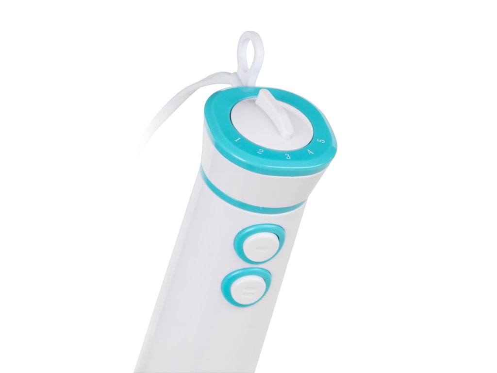 Ușor de utilizat, mixerul de mână TSA3505 cu cuțit dublu, care taie vertical și orizontal, garantează eficiență maximă în prepararea cocktailurilor de fructe, sucurilor sau supelor. Capul aparatului este fabricat din oțel inoxidabil de înaltă calitate, astfel că poate procesa și alimente la temperaturi ridicate. Mixerul are funcții esențiale care vă permit să adaptați cu ușurință și rapiditate funcționarea aparatului la nevoile dvs., inclusiv reglajul vitezei și modul turbo, care dublează viteza. TSA3505 este ideal pentru cei care au spații mici de bucătărie - aparatul ocupă puțin loc pe blat și, datorită suportului inclus, poate fi agățat și pe perete. Datorită culorii albe și conturului turcoaz, mixerul se potrivește designului bucătăriilor moderne.