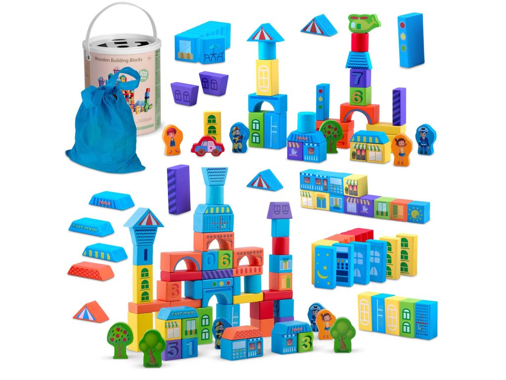 Cuburi educaționale din lemn 100 bucăți