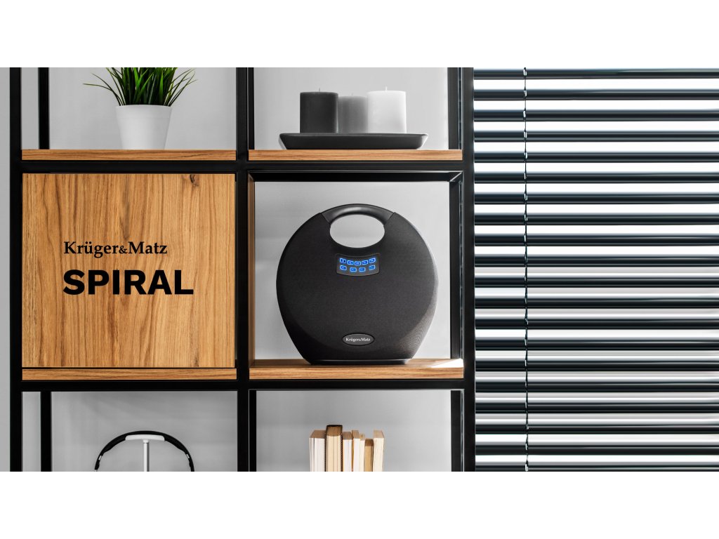 Boxa Spiral este eleganță și funcționalitate. Forma circulară caracteristică cu un mâner integrat combinată cu greutatea redusă vă oferă o combinație care vă permite să transportați comod dispozitivul oriunde. Funcționarea rapidă a boxei este asigurată, la rândul ei, de un panou de control situat pe carcasă, de exemplu prin intermediul butoanelor pentru schimbarea sursei, volumului sau piesei.