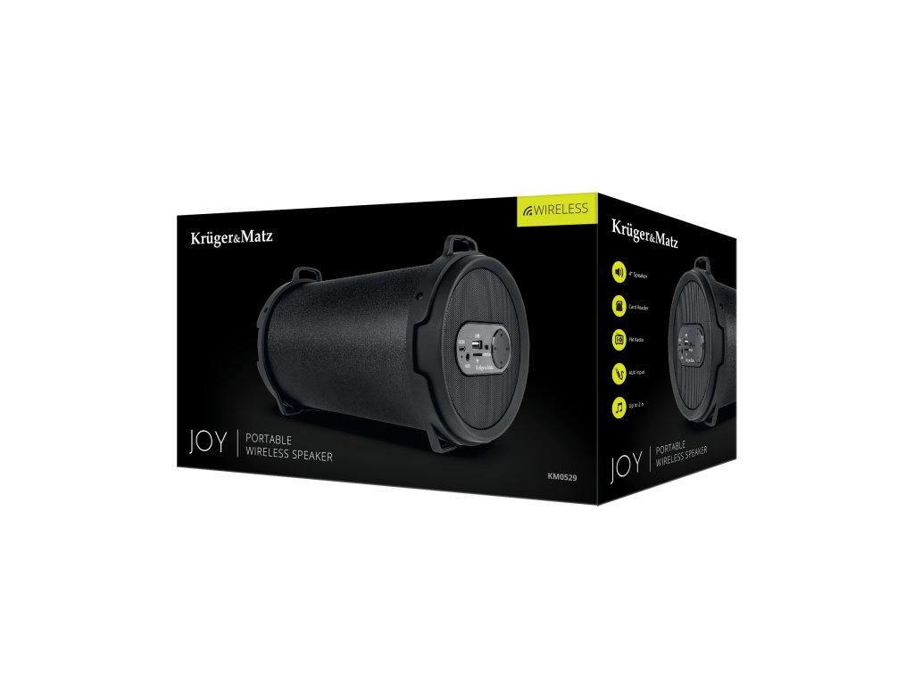 Împărtășește bucuria Dorești o plimbare acompaniată de muzica ta preferată Acum este posibil datorită difuzorului wireless Kruger&Matz Joy. Designul său original și modern se îmbină cu soluții practice - difuzorul este echipat cu un mâner confortabil care permite transportul său ușor. Ia-l cu tine la un picnic sau o petrecere în aer liber pentru a face timpul mai plăcut pentru tine și prietenii tăi.