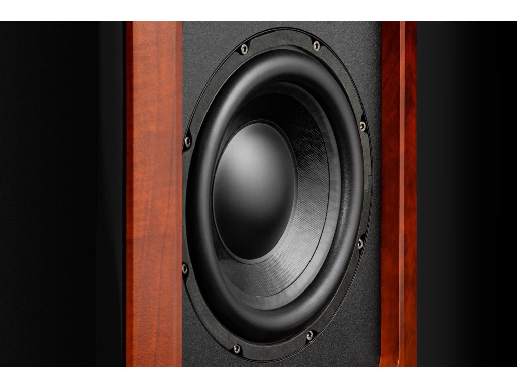 Sunetul profund și clar al celor mai joase tonuri este asigurat de un woofer de 8 inch cu membrană de celuloză cu un interval de bass până la 36 Hz. Un mare avantaj este amplasarea sa - driverul a fost plasat în peretele lateral, menținând astfel forma subțire a difuzoarelor.