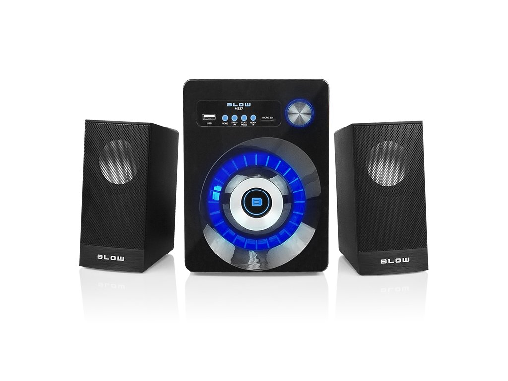 Set de difuzoare caracterizat printr-un design atractiv și modern. Este format din două difuzoare care asigură sunet stereo și un subwoofer responsabil pentru redarea basului. Panoul de control de pe partea frontală a difuzorului permite ajustarea ușoară a volumului, schimbarea modurilor sau pauzarea și comutarea melodiilor. Pe panou se află porturi USB și MicroSD sau pe partea din spate a difuzorului un cablu AUX, care permite redarea fișierelor muzicale din surse externe. Difuzoarele sunt impresionante și din punct de vedere estetic. Culoarea neagră conferă setului un aspect elegant.