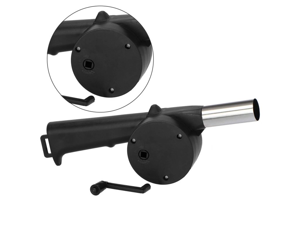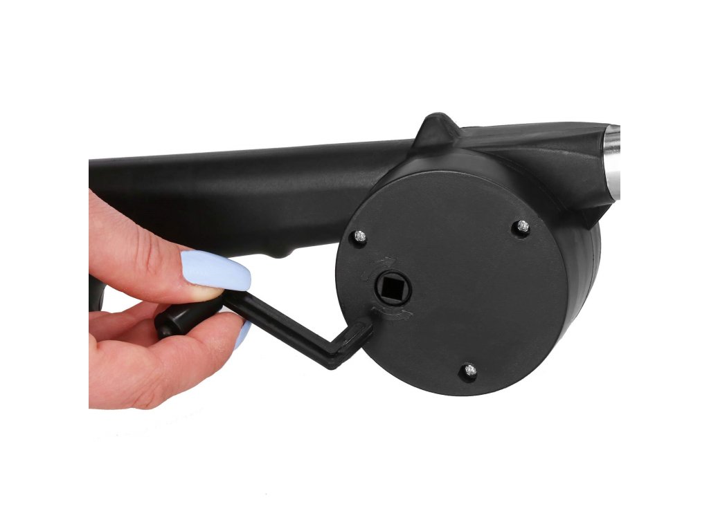 - Elemente pentru asamblare separată (3): corpul ventilatorului, duză de oțel, mânerul manivelei