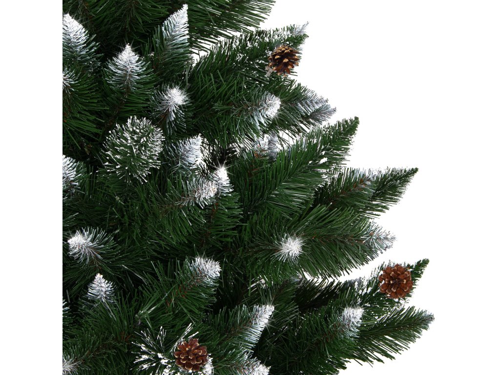 În plus: conuri naturale, efect mat pe ramuri (parte albă, sclipici alb)