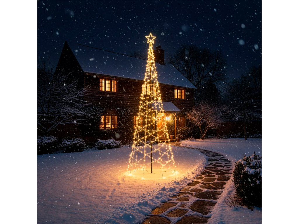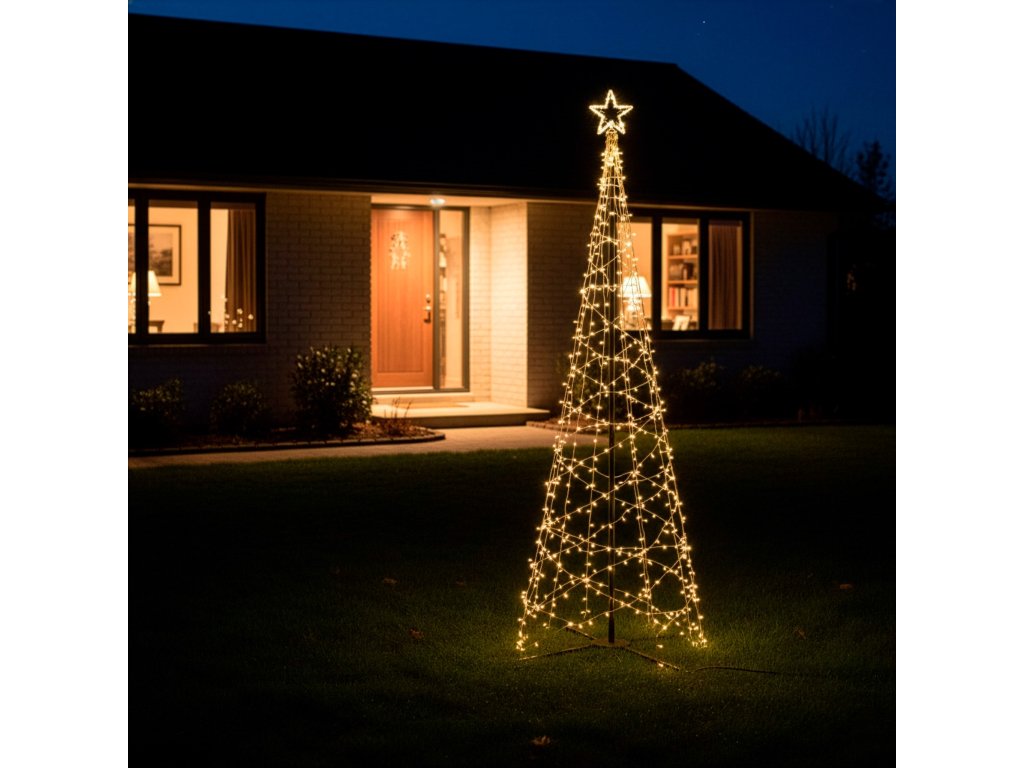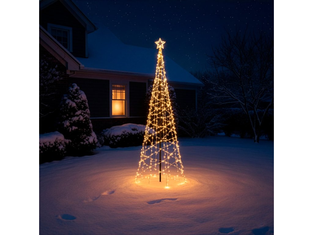 - Pomul constă din opt sfori între care sunt aranjate firele LED, creând iluminarea decorului