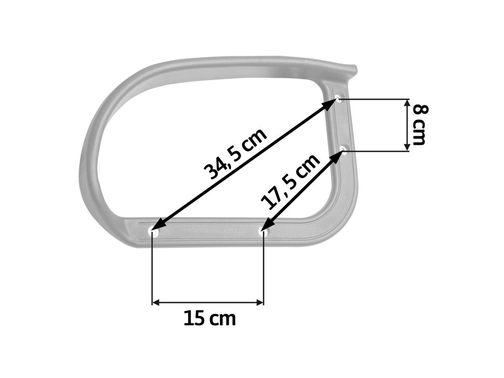 Măsurați distanța exactă dintre șuruburile scaunului dumneavoastră și comparați cu fotografia de pe cealaltă parte. Setul nu include niciun șurub sau prize!