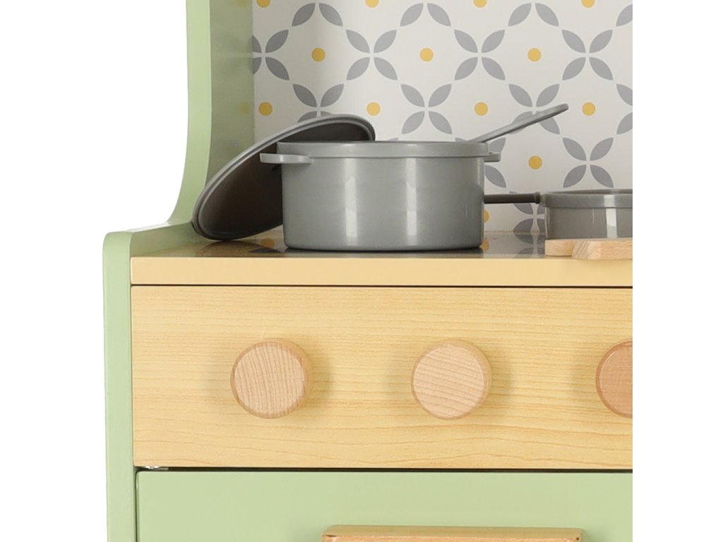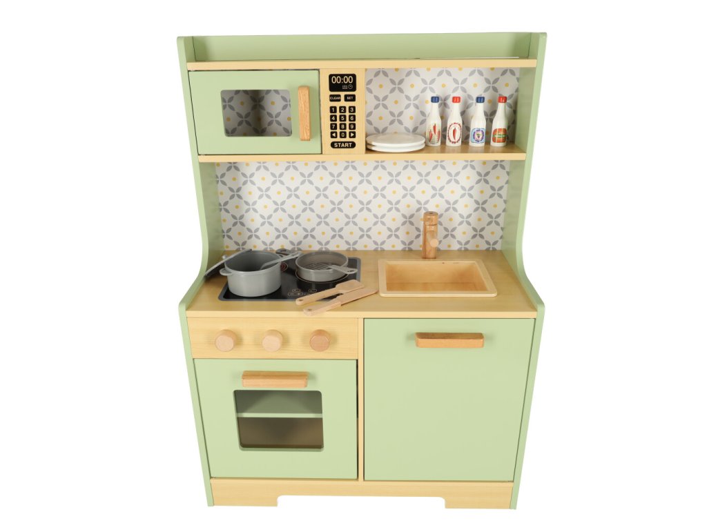 Bucătăria din lemn pentru copii de culoare mentă este propriul loc unde copilul poate descoperi arta gătitului și învăța noi abilități!