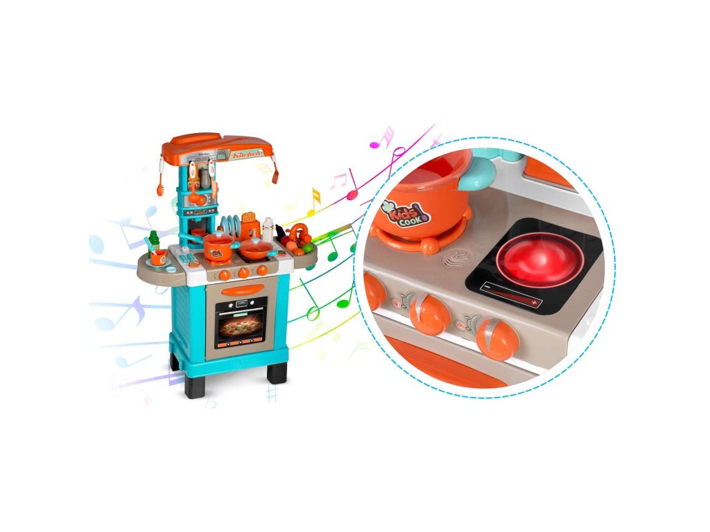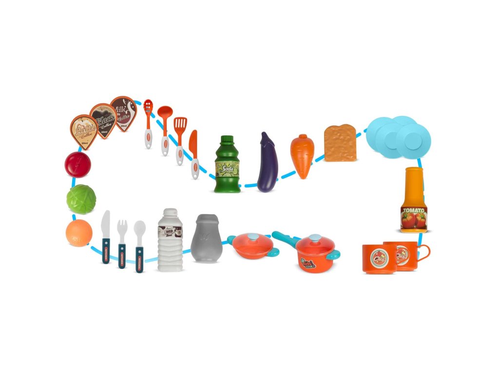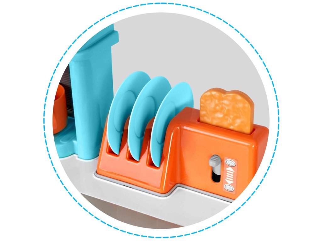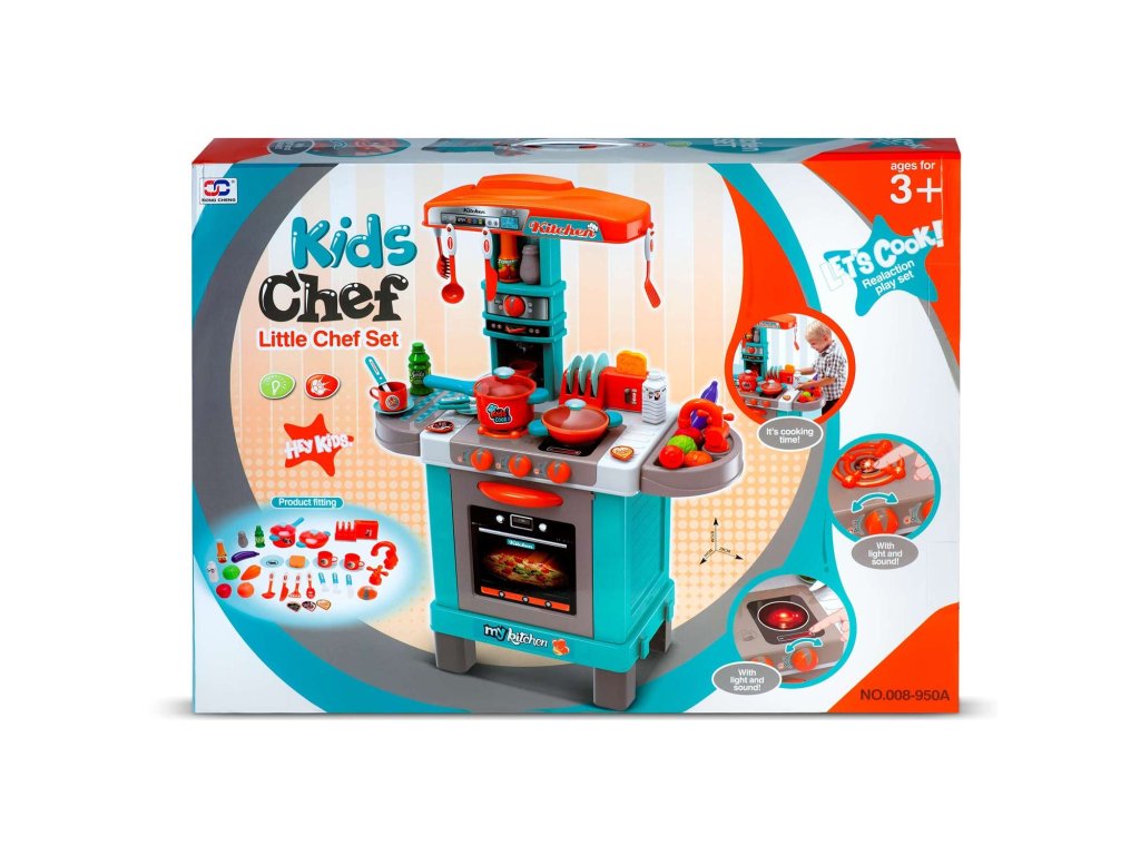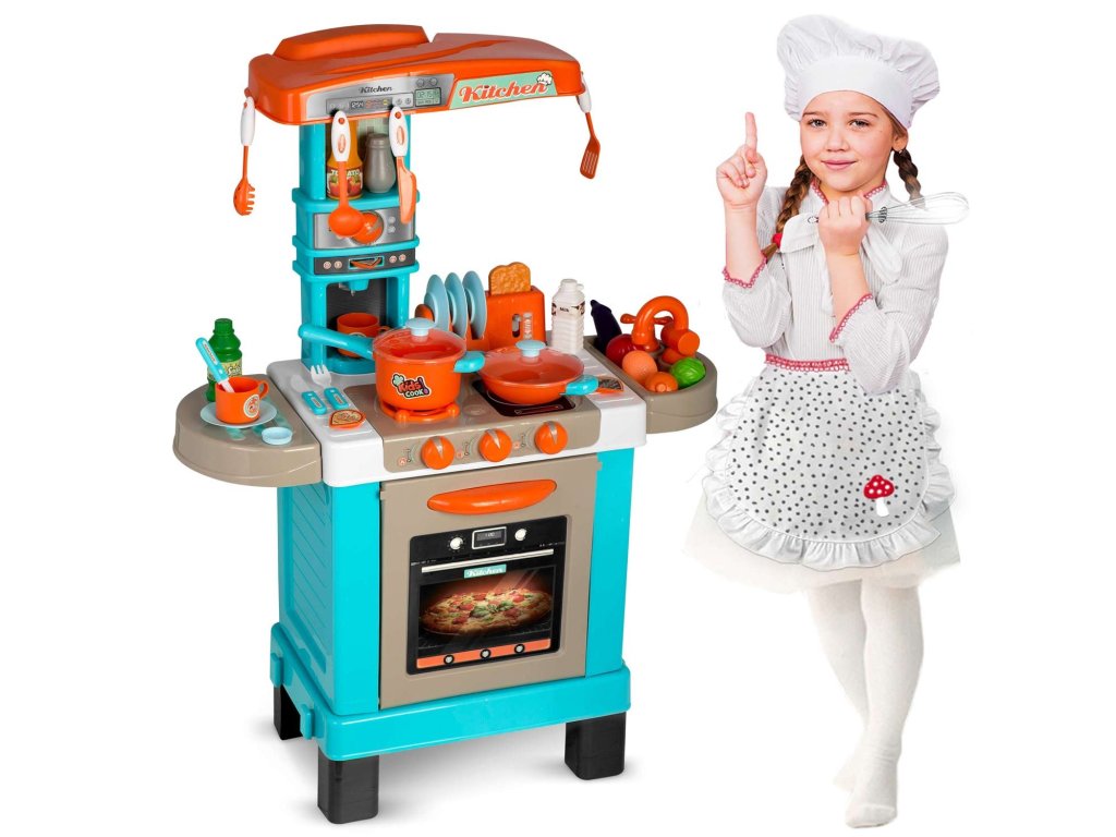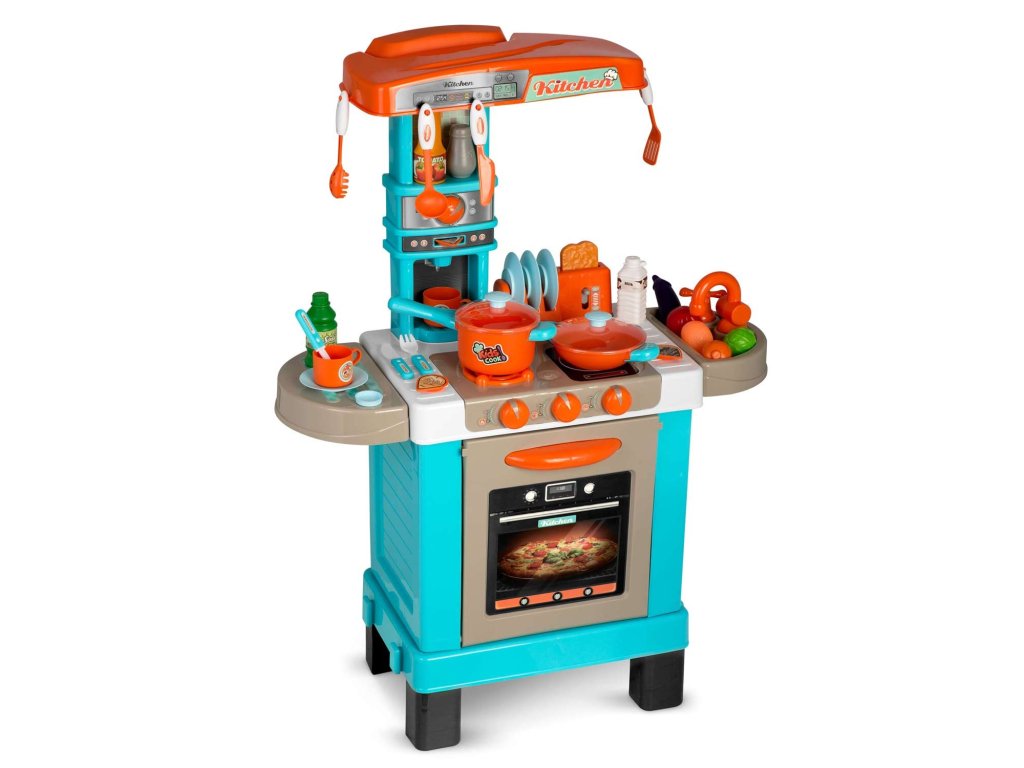 Această bucătărie este visul fiecărui copil. Ușile care se deschid, butoanele mobile și accesoriile reale asigură distracție timp de multe ore.