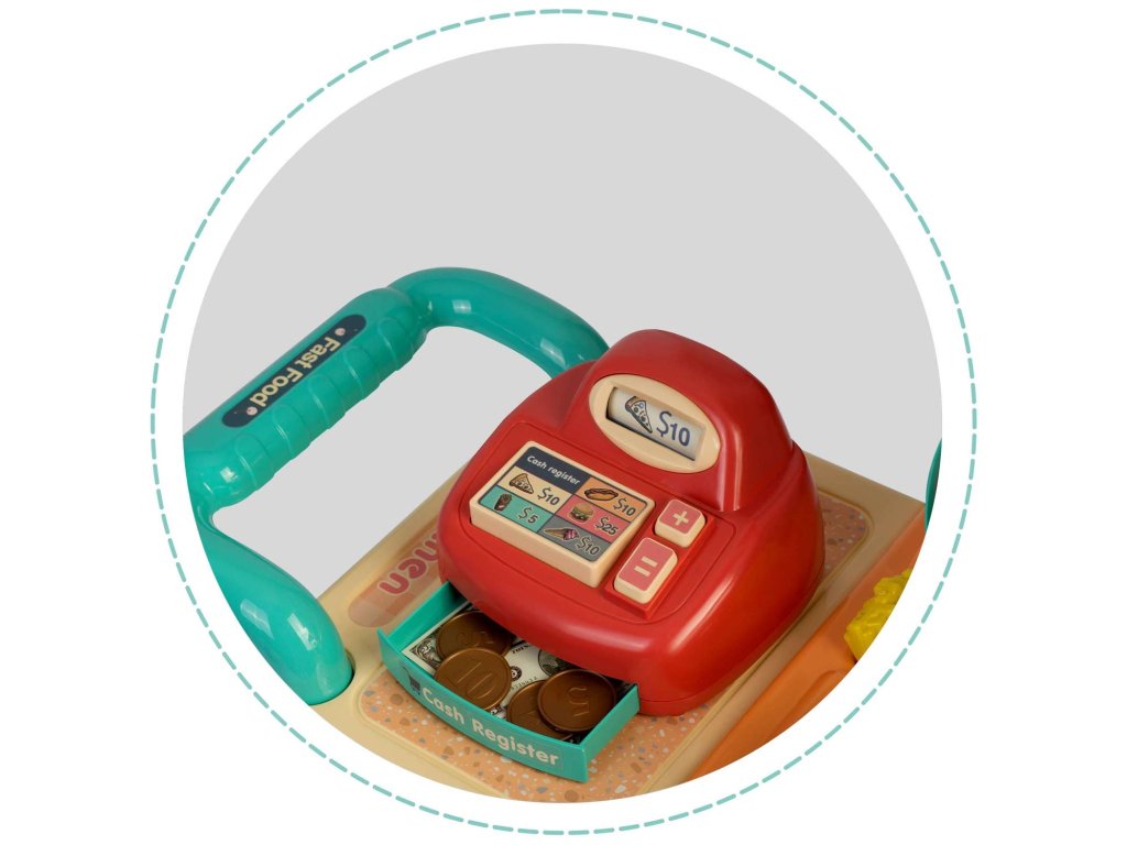 - accesoriile și alimentele vizibile în imagine sunt incluse în set (șorțul și boneta de bucătar nu sunt vizibile pe cutie),