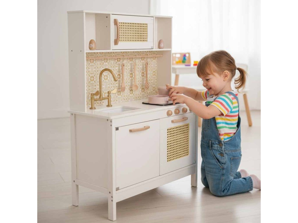BUCĂTĂRIA DE JUCĂRIE RETRO DIN MDF CU ACCESORII ALBE