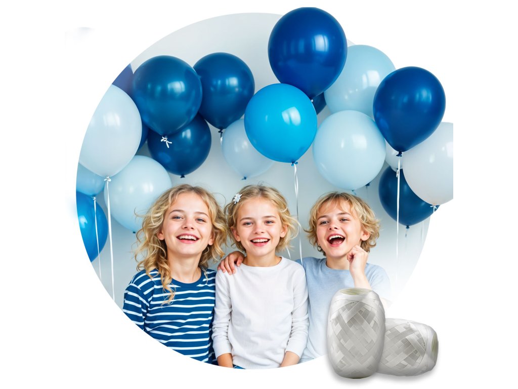 - 30 de baloane în culorile: alb, albastru și bleumarin,