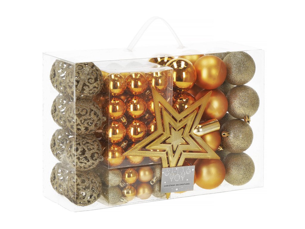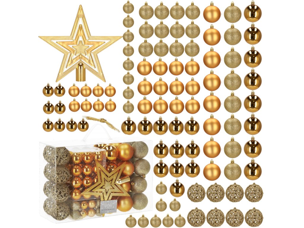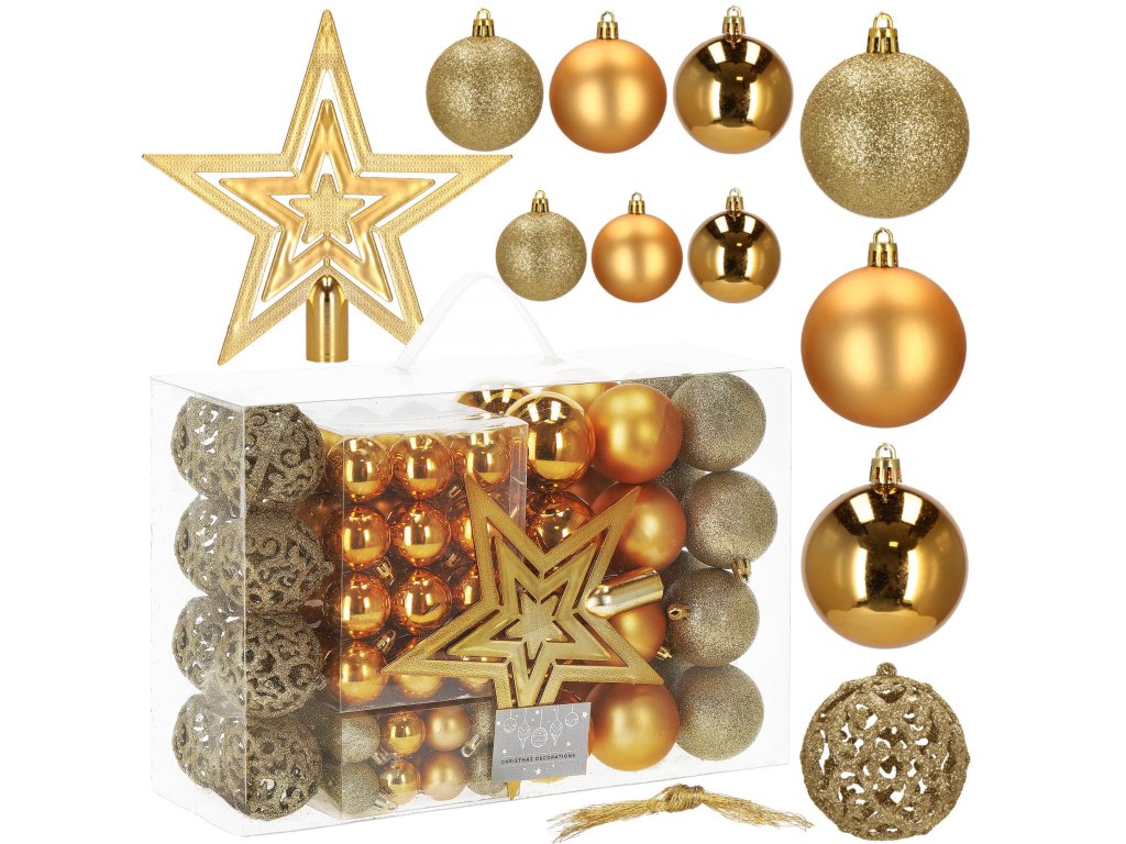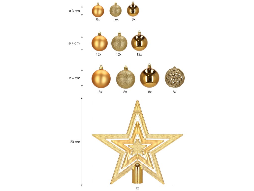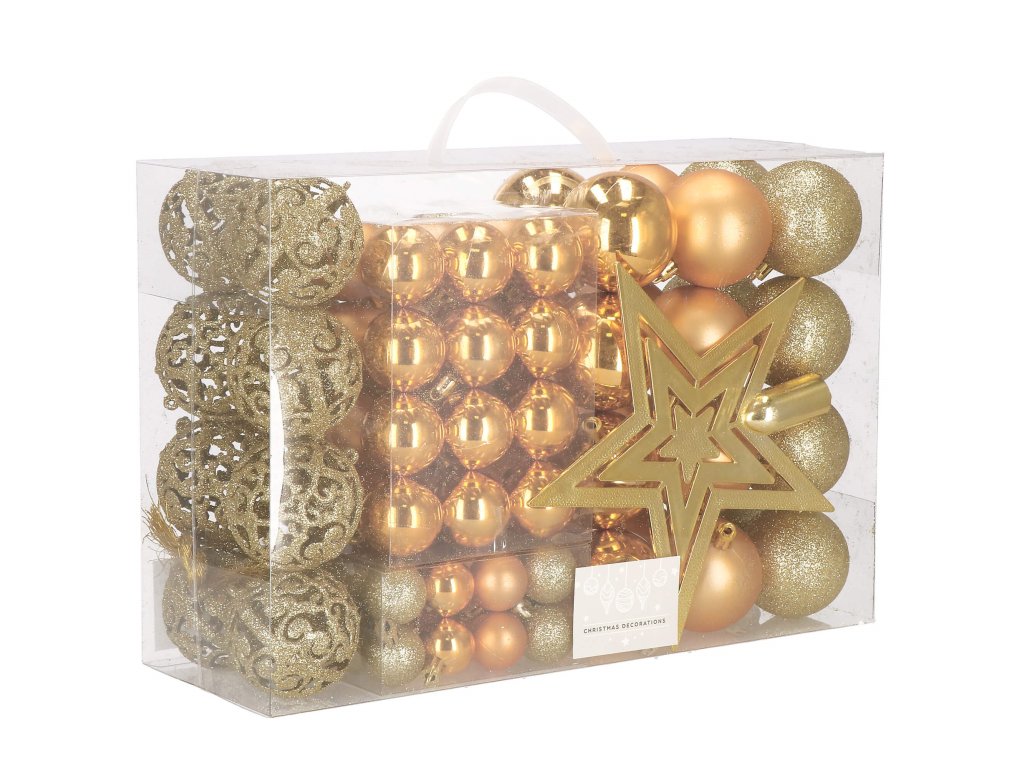 - Cantitate: 100 bucăți bile + 1 stea pentru vârful bradului