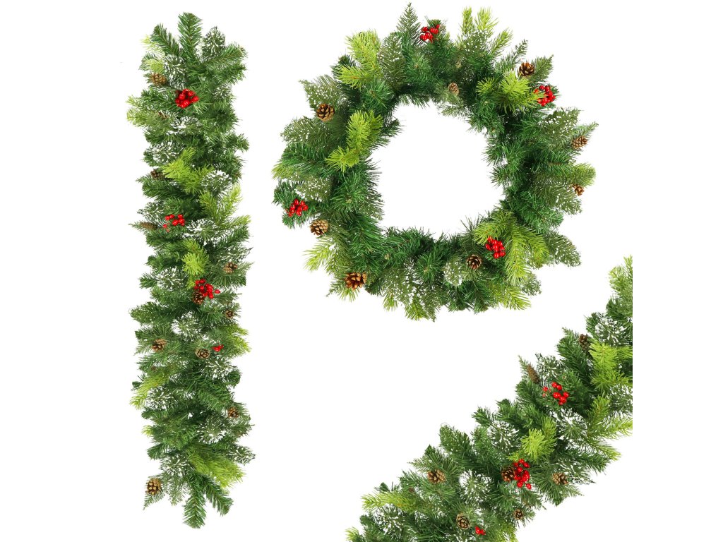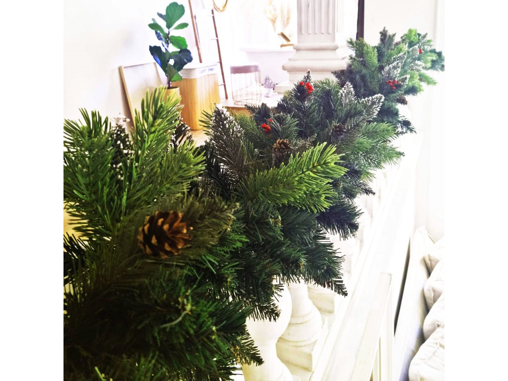 Model: ghirlandă decorată cu conuri și ramuri de scoruș