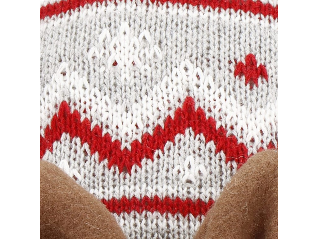 Căciulă: gri cu modele roșu-albe, motiv de Crăciun