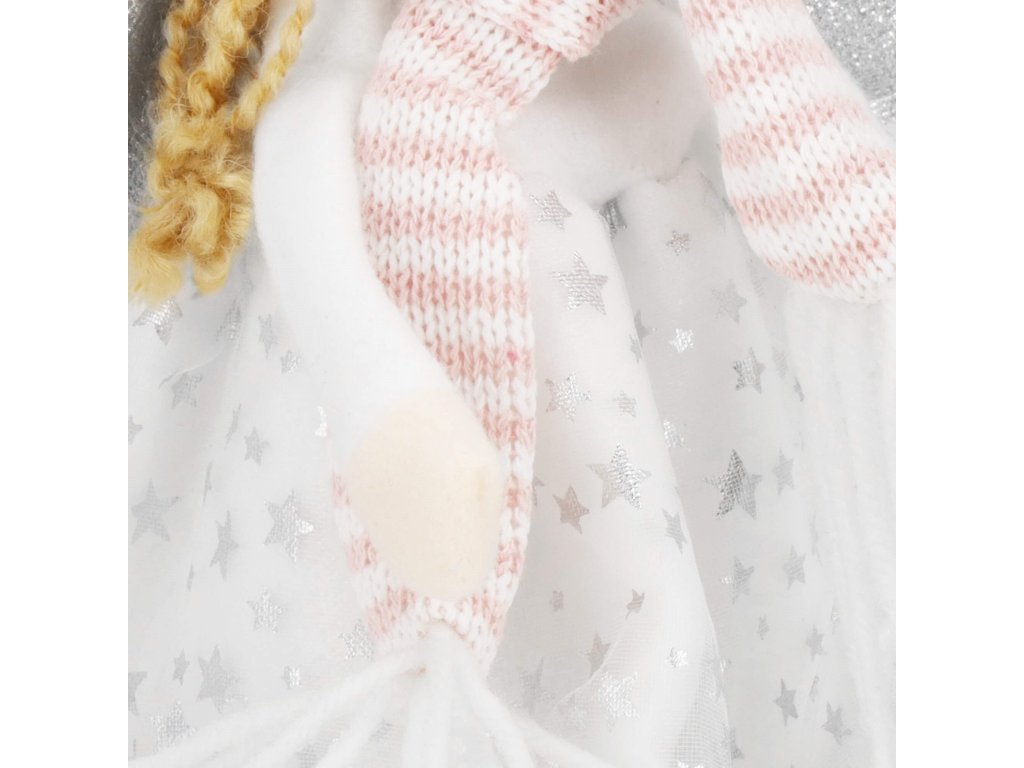 - Elemente de construcție: exterior: căciuliță cu formă ajustabilă (sârmă în interior), față, codițe, fular, aripi argintii, rochie albă, brațe flexibile (sârme în interior), plasă decorată cu steluțe argintii, picioare lungi și subțiri, tălpi mari; sub partea de jos: pachet cu lumină LED, întrerupător on/off și compartiment pentru baterii