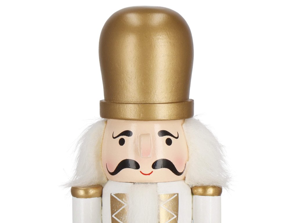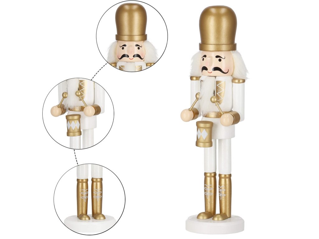 - Elemente de construcție: căciulă aurie, ținută alb-aurie, pantofi aurii, față cu ochi și mustăți, nas proeminent, păr cărunt și barbă, deschidere pentru nucă în gură activată prin ridicarea levierului din spate, toboșar, în mână bețe de joc