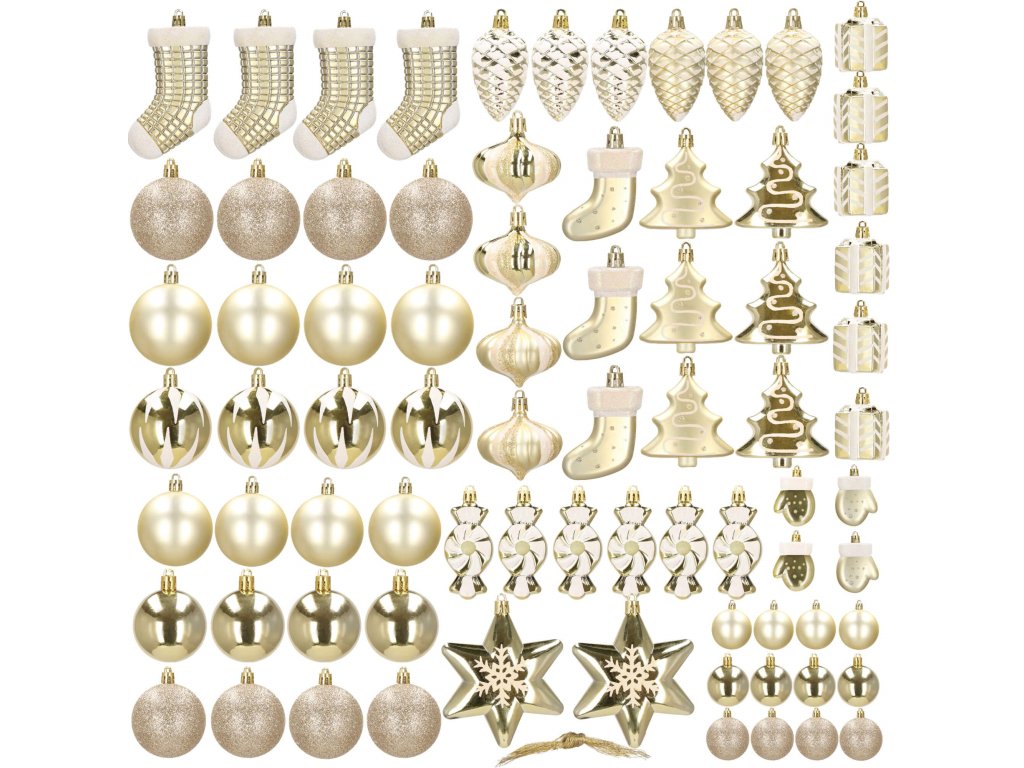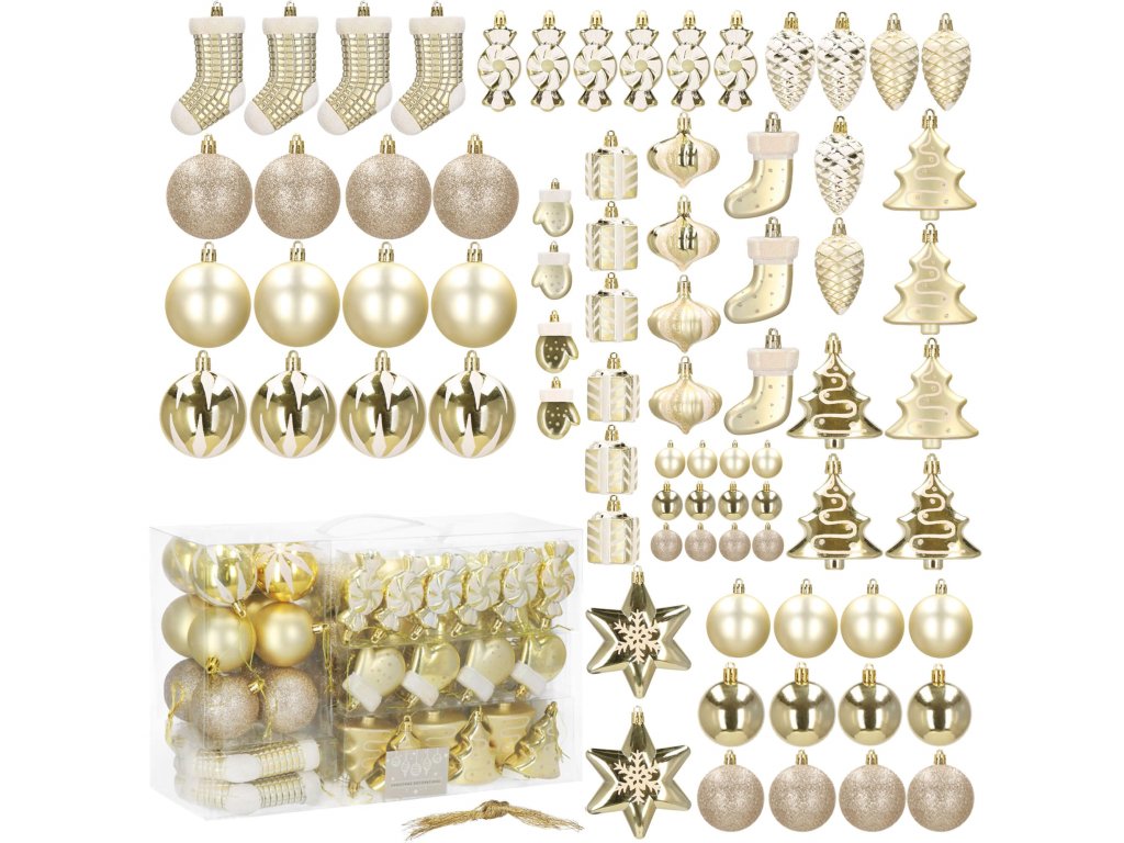 - 6x glob "brad de Crăciun" - aur mat + lucios + sclipici alb: 7 x 6,5 cm