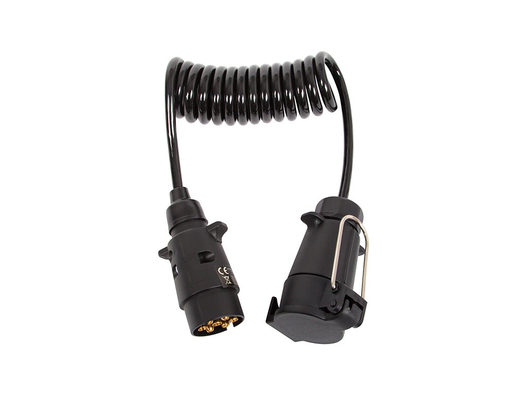 Vă prezentăm Cablu prelungitor spirală 7 pini 1,5m pentru remorci, soluția ideală pentru oricine are nevoie de un cablu de conexiune fiabil și sigur între vehicul și remorcă. Acest cablu a fost proiectat pentru a îndeplini toate standardele de siguranță importante atunci când se utilizează remorci și rulote.