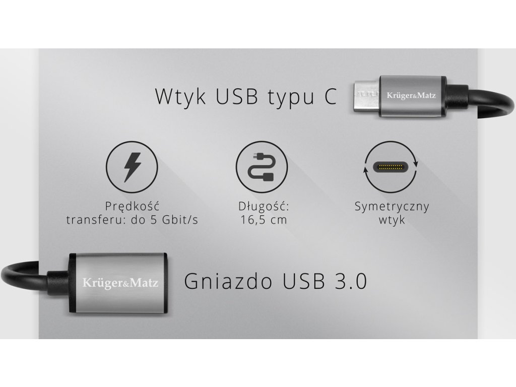 Încercați cablul Kruger&Matz OTG din seria Basic astăzi și descoperiți cât de ușor puteți îmbunătăți experiența utilizatorului cu dispozitivele dvs. mobile! Cablul este echipat la un capăt cu un conector USB tip C și la celălalt capăt cu mufă USB. Această soluție vă permite, printre altele, să conectați un pendrive la un laptop care nu este echipat cu un port USB standard.