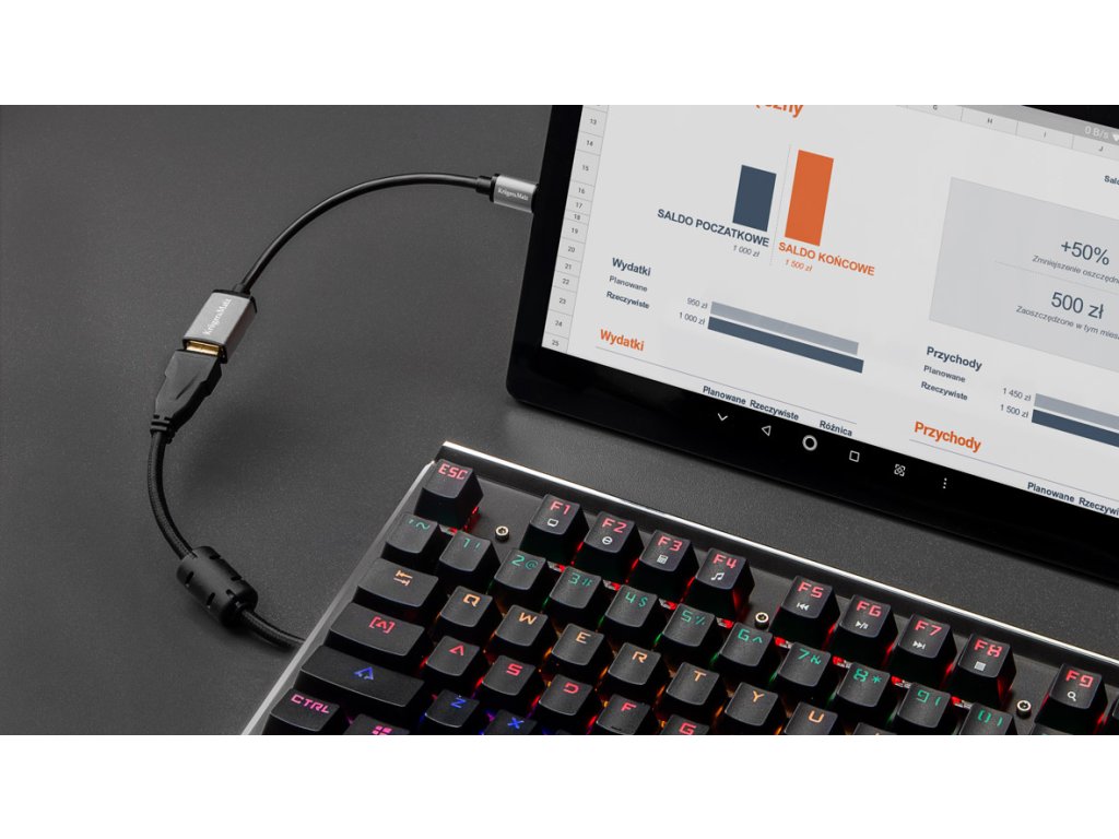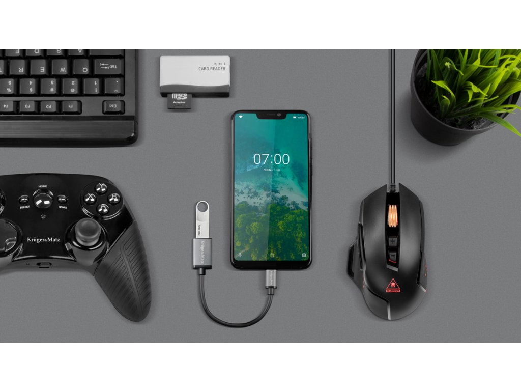 Conectarea unei memorii externe nu este singurul avantaj al deținerii unui adaptor Kruger&Matz. Datorită acestui dispozitiv discret, puteți, de asemenea, să creșteți funcționalitatea tabletei dvs. Conectați o tastatură și creați-vă un instrument de lucru confortabil. Cablul va atrage și fanii jocurilor pe smartphone - cu ajutorul său puteți conecta un pad și astfel crește confortul în timpul jocului.