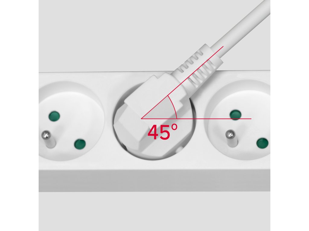 Prize înclinateDoriți să conectați la prelungitor o imprimantă, un computer și alte dispozitive Prizele din prelungitorul Rebel, plasate la un unghi de 45 de grade, permit conectarea confortabilă a până la 3 dispozitive alăturate simultan.