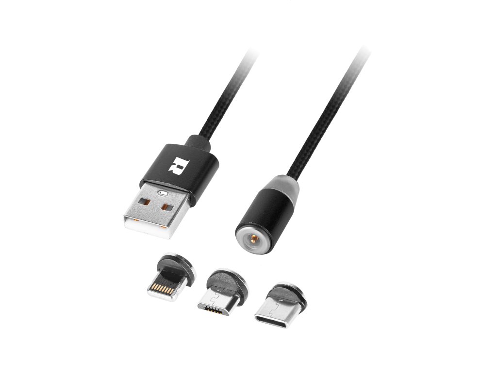 Cablu USB 3în1 microUSB, USB tip C, Lightning 1m magnetic RB-6004-100-B