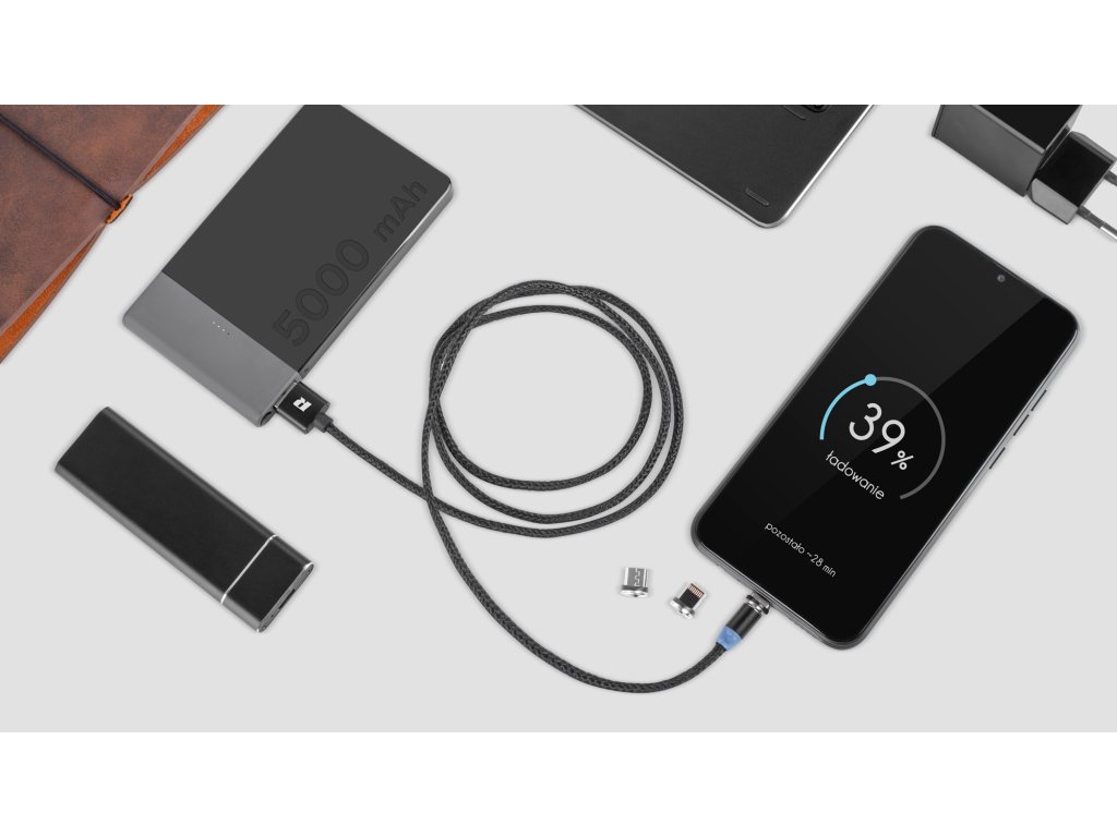 Călătoriți și aveți nevoie de un cablu pentru iPhone, un cablu USB C pentru a încărca tableta și un cablu micro USB, pentru că cititorul dvs. de cărți electronice îl folosește Acum puteți înlocui toate aceste accesorii cu unul singur - cablul magnetic USB 3 în 1 din seria Rebel Comp. Această soluție inovatoare și extrem de confortabilă permite amplasarea permanentă a conectorilor în priza electrică, prevenind astfel deteriorarea cauzată de conectarea și deconectarea frecventă a cablului de încărcare.