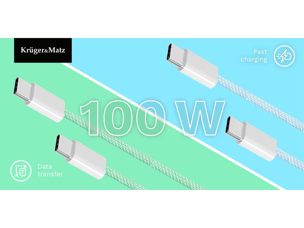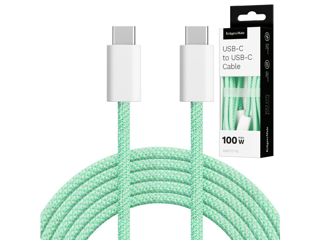 Cablu USB de tip C - USB de tip C 100 W 1 m verde Kruger&Matz Basic