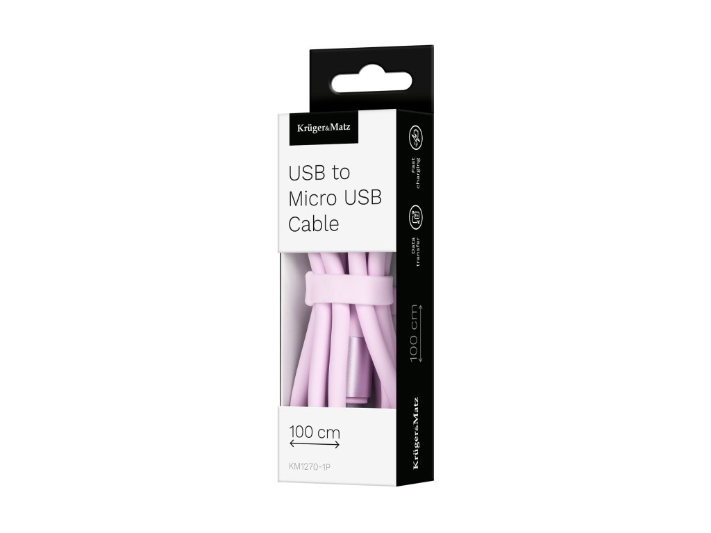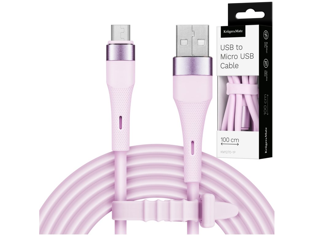 Cablu USB - microUSB 1 m silicon roz roz Kruger&Matz Basic