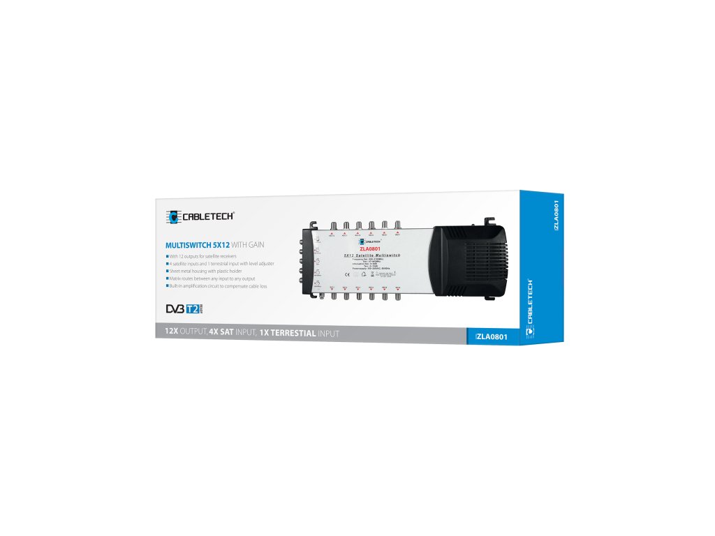 Multiswitch ZLA0801 cu 4 intrări de satelit pentru convertoare Quattro și o intrare TV permite combinarea semnalelor TV terestre cu semnalele TV prin satelit, oferind astfel posibilitatea de distribuție independentă până la 12 receptoare. Această soluție este ideală pentru case familiale sau apartamente.