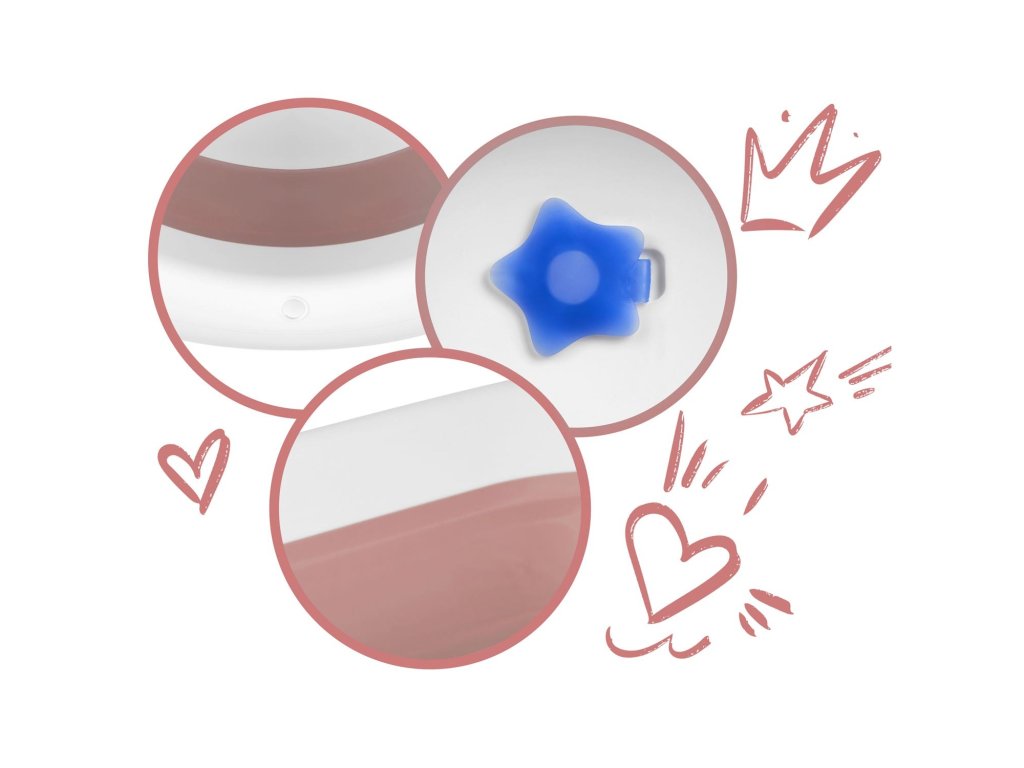 Siguranță sporităDacă temperatura apei depășește 38 °C, dopul în formă de stea își schimbă culoarea din albastru în alb.Sofisticată în fiecare detaliu!Finisaje elegante și un design ergonomic fac din cada nu doar o soluție practică, ci și un element de design elegant pentru casa dumneavoastră.