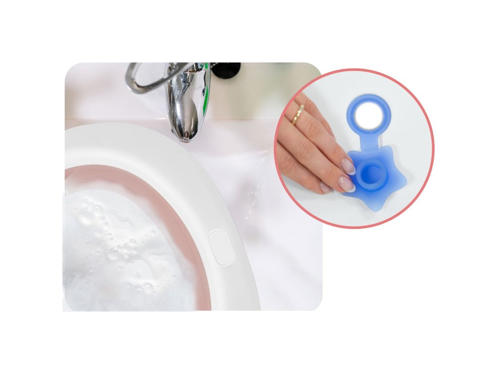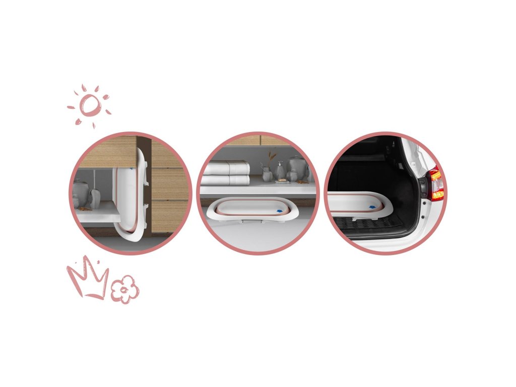 Turnare ușoară a apei!Datorită dopului, puteți turna apa direct în chiuvetă sau cadă. Astfel, evitați să mutați cada și reduceți riscul de a vărsa apă.Funcționalitate suplimentară a căziiCada poate fi utilizată și ca piscină uscată cu bile sau ca bazin în grădină pe vreme caldă. Când copilul dumneavoastră va crește, o puteți folosi pentru activități casnice.