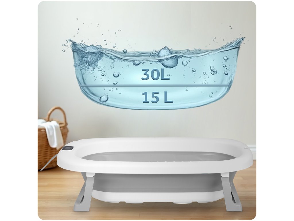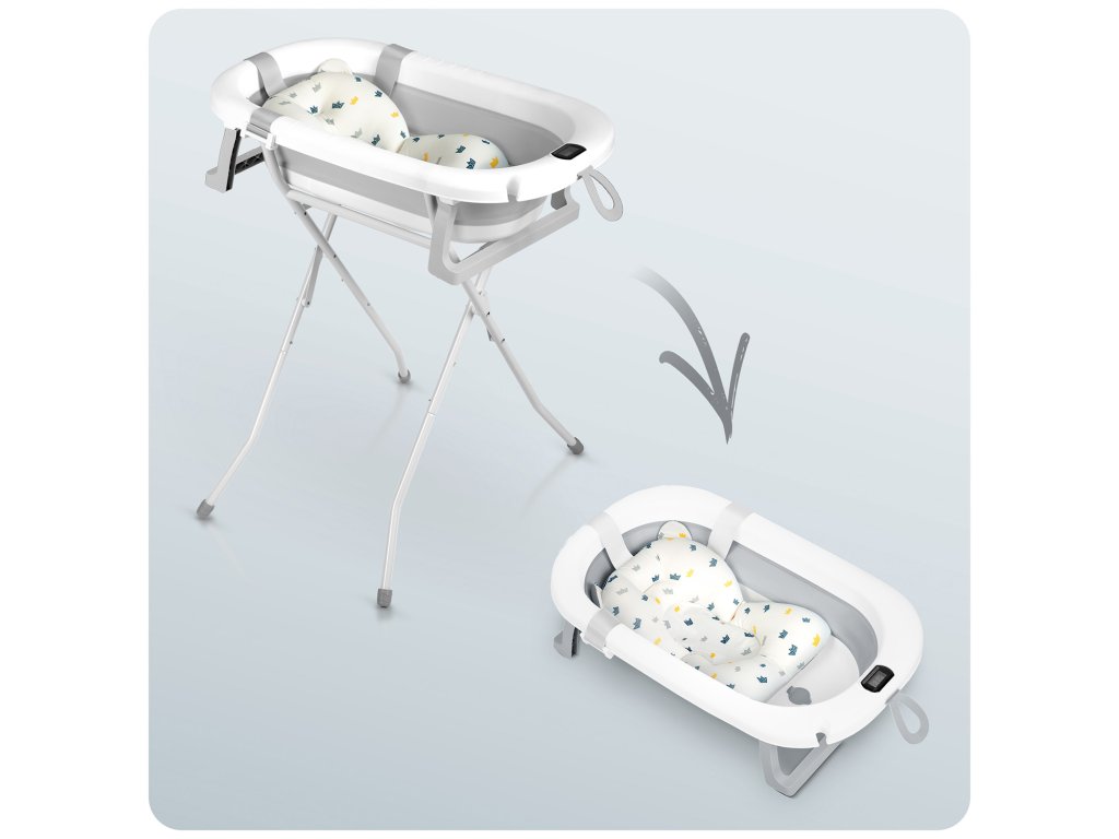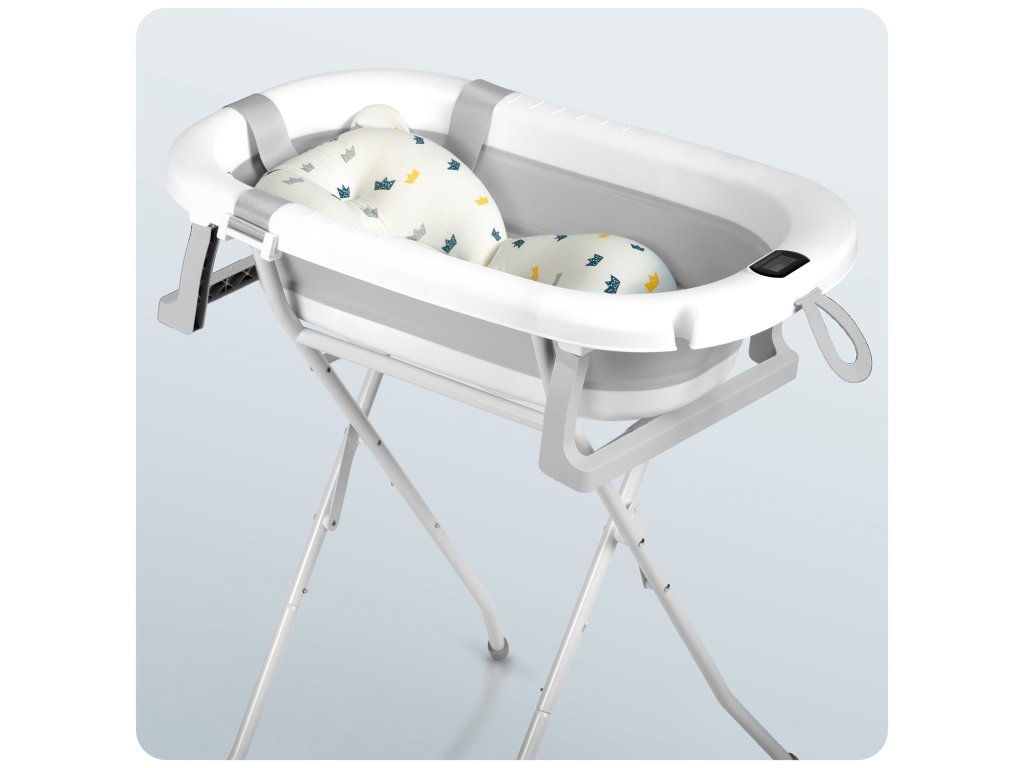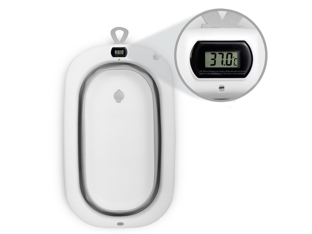 Cadă pliabilă pentru copii, bebeluși cu suport, termometru și inserție Ricokids RK-287 alb-gri