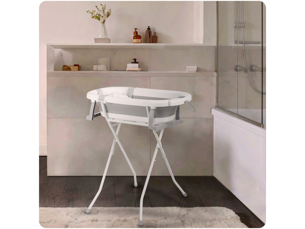 Datorită picioarelor pliabile cădița nu se va strânge pe durata băii. Suporturile antiderapante asigură siguranță pe suprafețele alunecoase.
