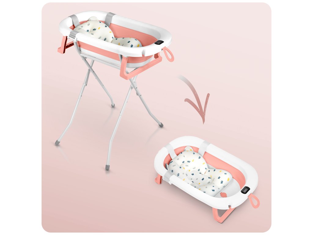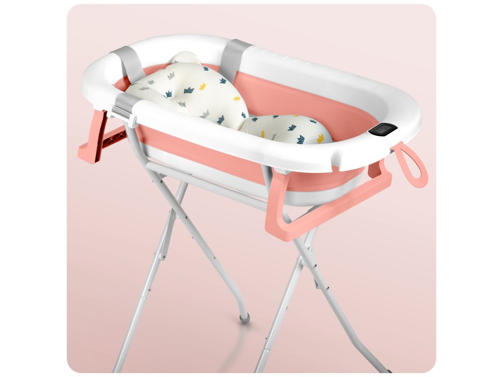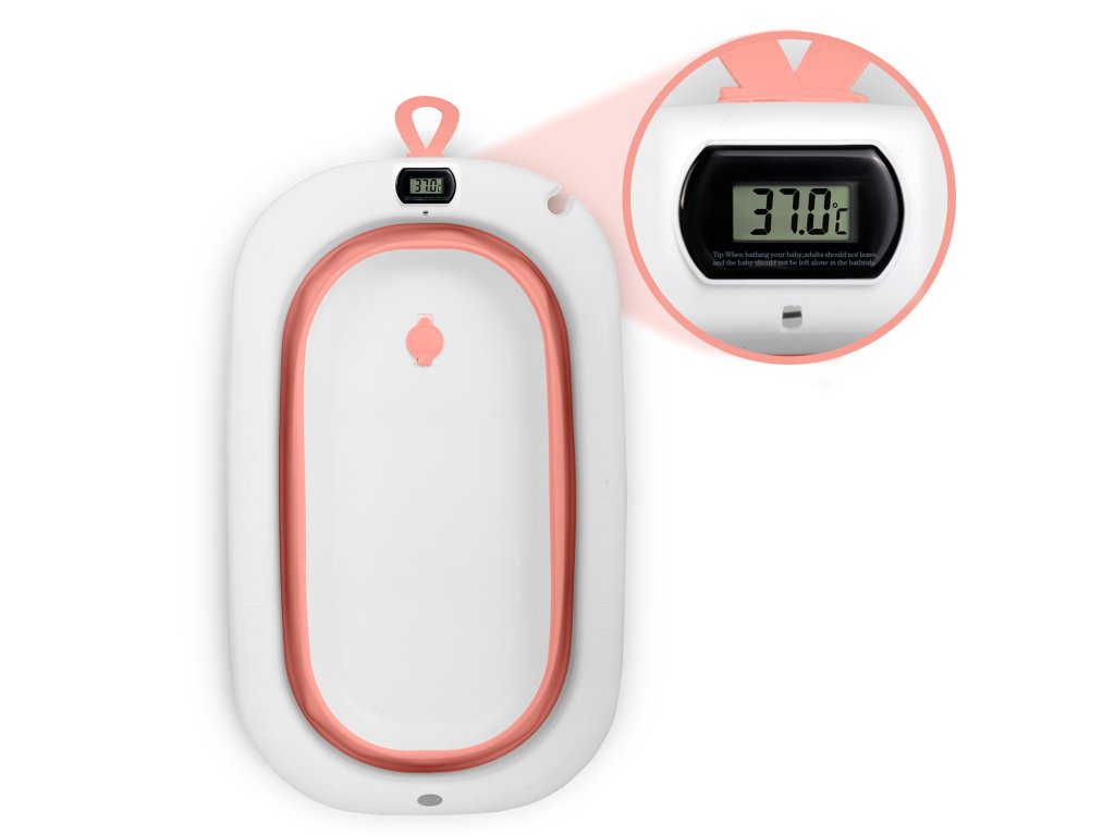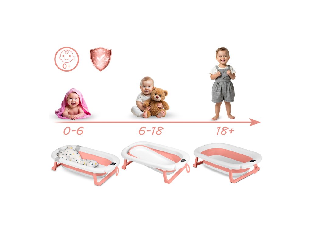 Cadă pliabilă pentru copii, bebeluși cu suport, termometru și inserție Ricokids RK-287 alb-roz