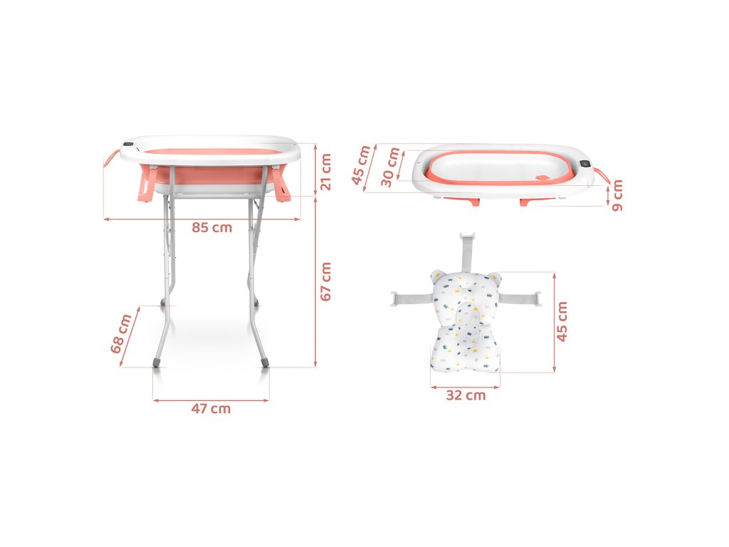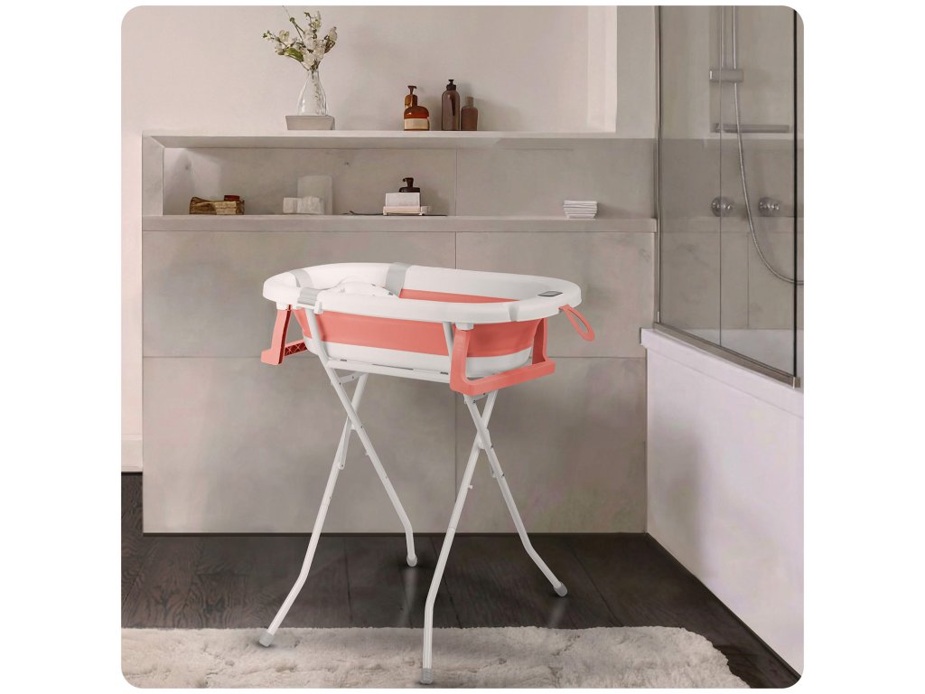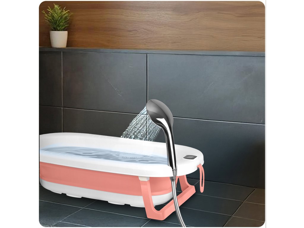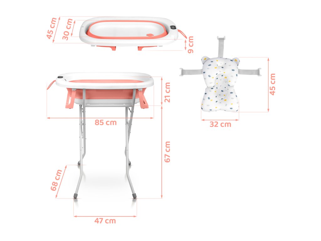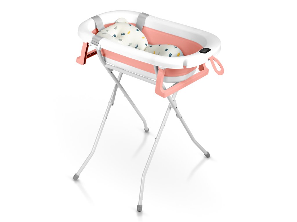 Cadă pliabilă pentru copii, bebeluși cu suport, termometru și inserție Ricokids RK-287 alb-roz