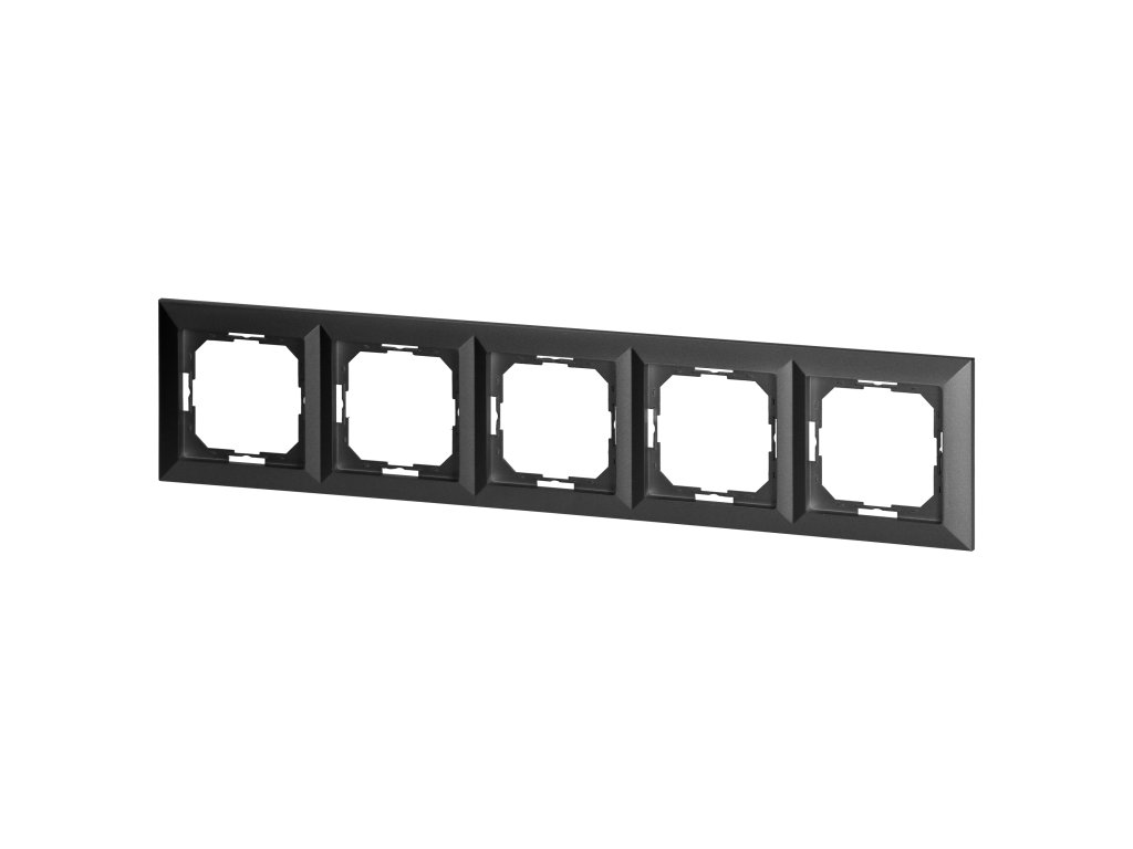 Seria modulară cu un sistem de plăci simetrice pentru rame (pentru 1, 2, 3, 4, 5 module) care permite montarea produsului în poziții orizontale și verticale. Mecanismul modern de conectare rapidă (firele sunt conectate prin împingerea directă în corp) asigură o instalare și o îndepărtare sigură a firelor. Prizele sunt echipate cu conexiuni tradiționale cu șurub. Designul intern al terminalelor garantează o conexiune sigură a firelor de la 0,75 mm² la 2,5 mm². Grila plăcii de montaj puternică și robustă și elementele de auto-retragere de înaltă calitate permit o instalare stabilă și sigură în cutie. Elemente speciale de arc facilitează fixarea ramei în corp.Ramă cvintuplă pentru seria Pearl. Ar trebui utilizată în interior (IP20).
