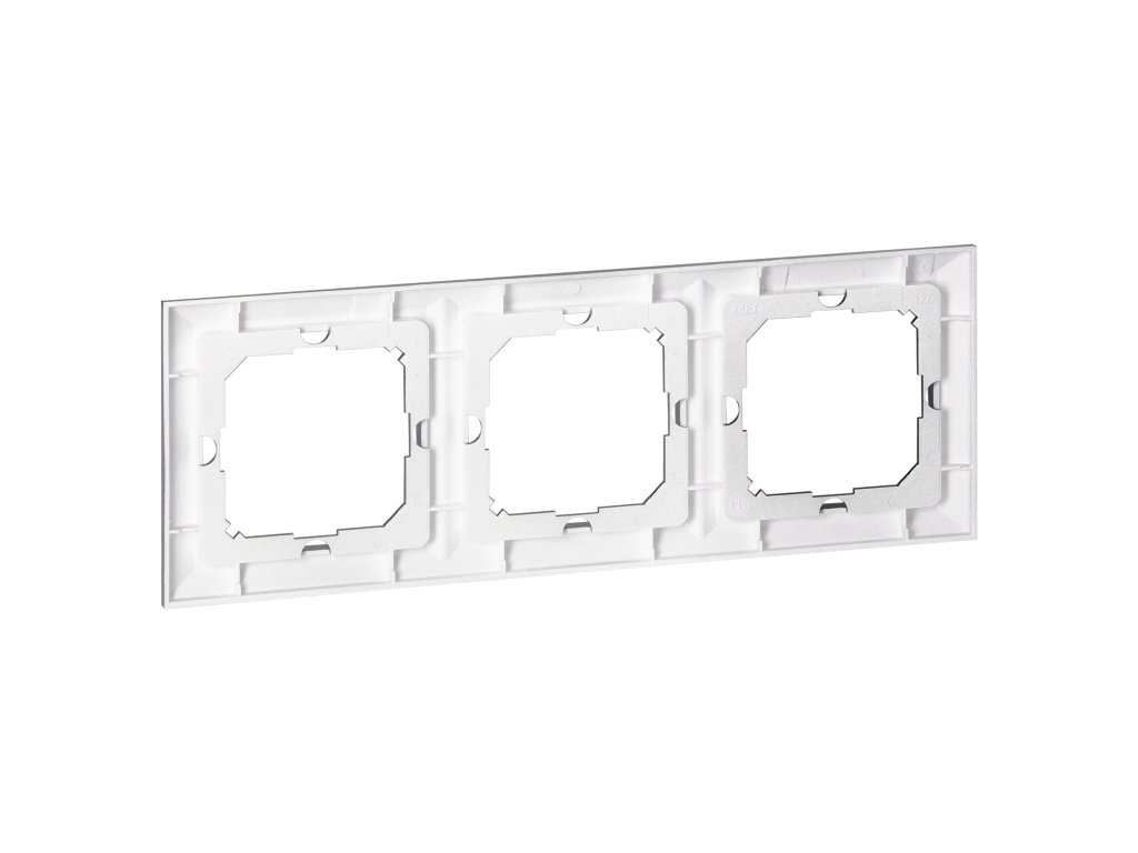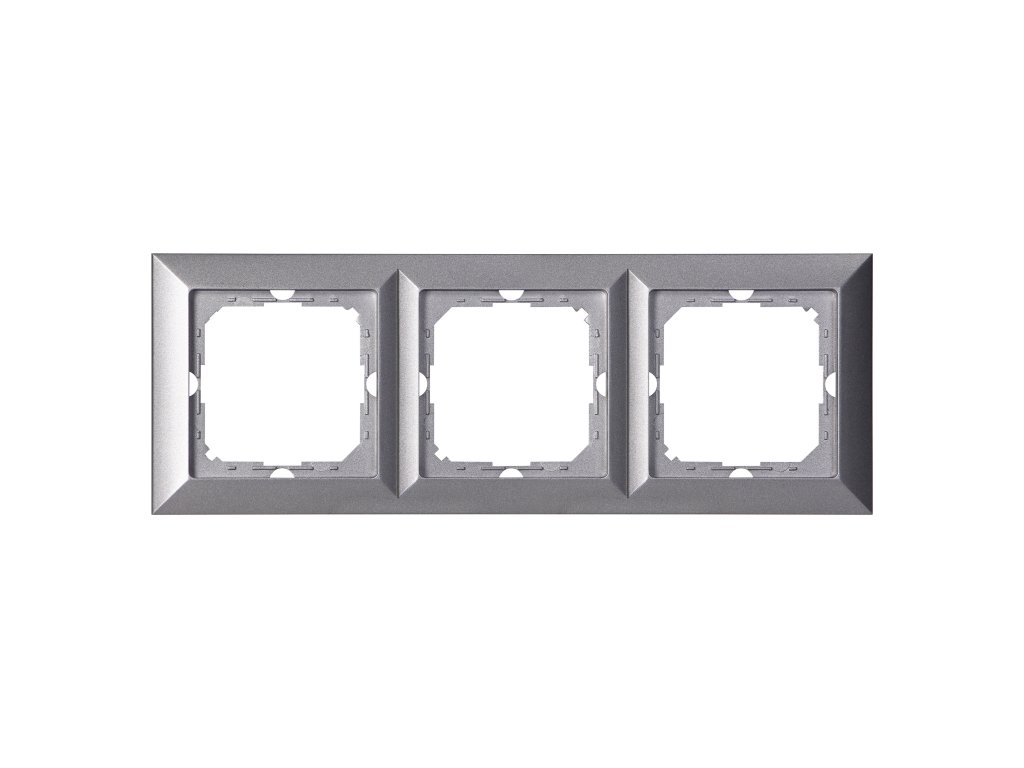 Seria modulară cu un sistem de plăci de cadru simetrice (pentru module de 1, 2, 3, 4, 5) care permite montarea produsului atât în poziții orizontale, cât și verticale. Mecanismul modern de conectare rapidă (firele sunt conectate prin împingerea lor direct în corp) oferă instalarea și eliminarea sigură și în siguranță a firelor. Prizele sunt echipate cu conexiuni tradiționale cu șuruburi. Designul intern al terminalelor asigură o conexiune sigură a firelor de la 0,75 mm² la 2,5 mm². Grila de montare robustă și elementele de auto-retragere de înaltă calitate permit o instalare stabilă și sigură în cutie. Elementele speciale de arc facilitează montarea cadrului în corp.Ramă triplă pentru seria Pearl. Trebuie utilizată în interior (IP20).