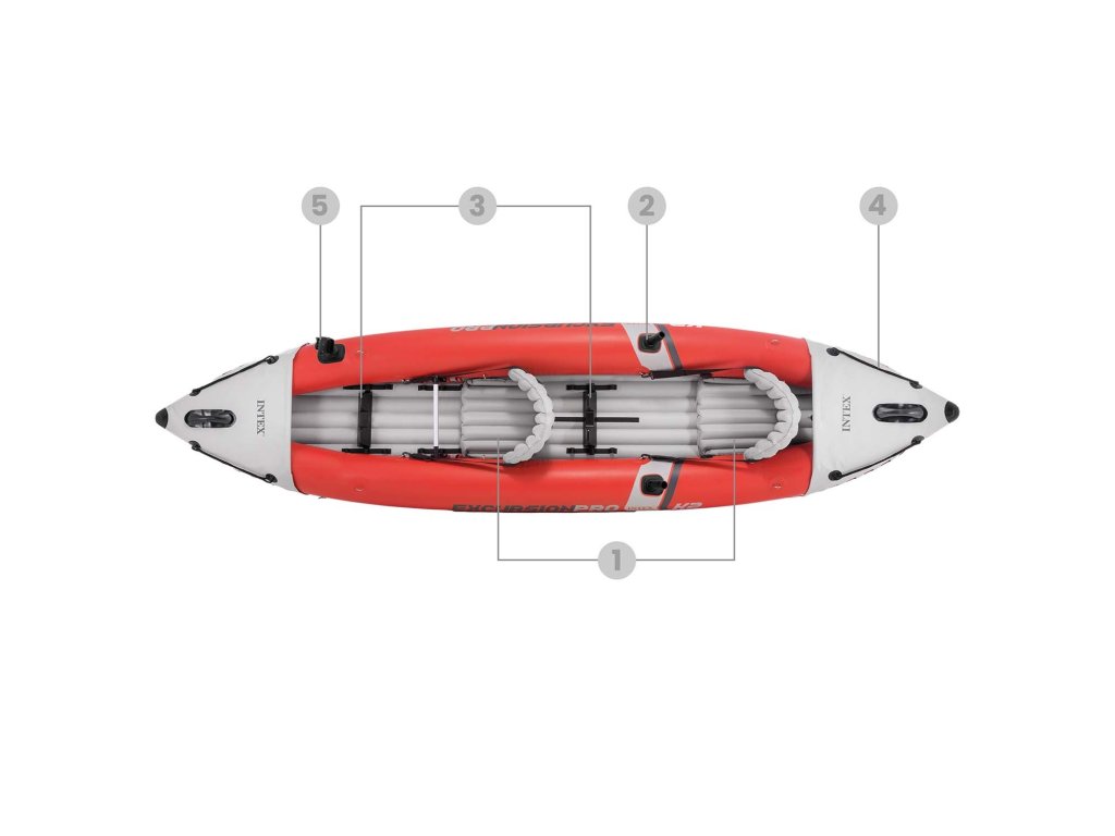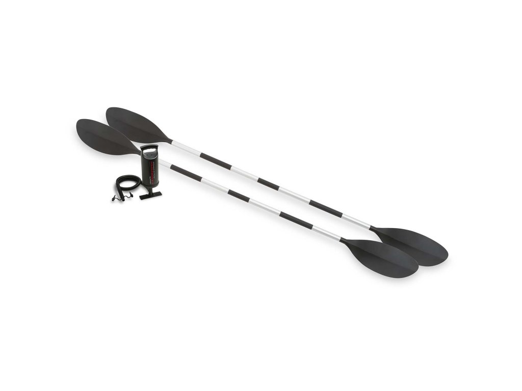 - Acest caiac solid împreună cu echipamentul necesar îți va oferi experiențe de neuitat încă din prima zi! Pentru tine, în setul caiacului au fost incluse 2 vâsle, 2 scaune și o pompă cu piston.