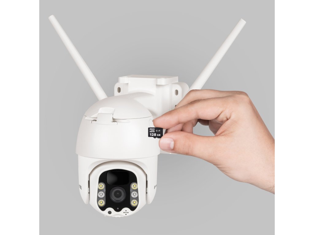 Camera exterioară Connect C100 este echipată cu un cititor de carduri SD cu o capacitate maximă de 128 GB, care în combinație cu compresia H.265 reduce semnificativ cantitatea de spațiu ocupat pe disc. În plus, dispozitivul vă permite să stocați materialul înregistrat în cloud.