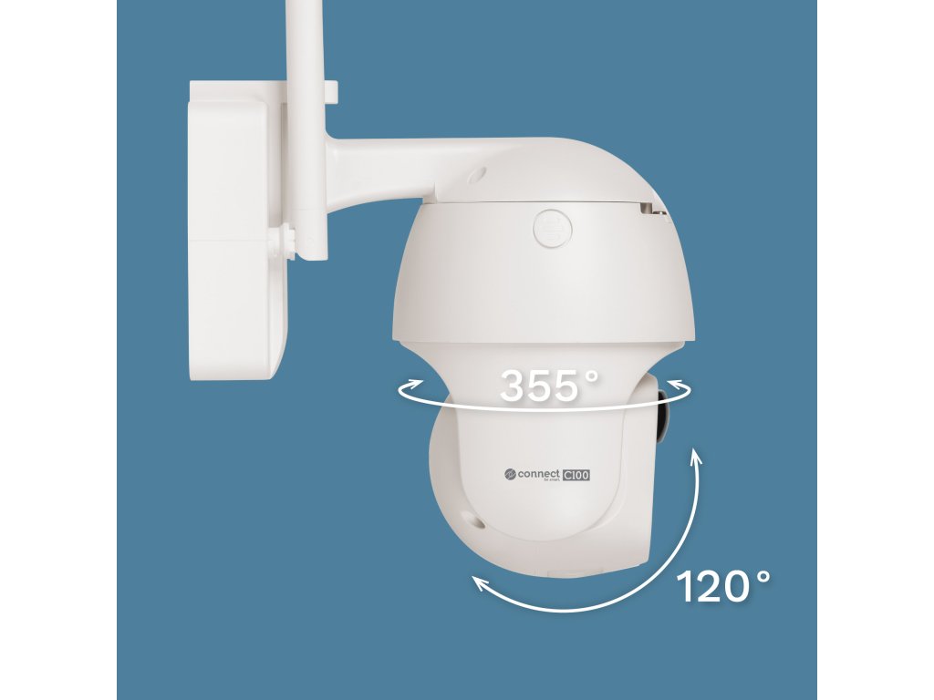 Cu camera Connect C100 nu trebuie să vă faceți griji cu privire la baterii sau la conectarea la sursa de energie. Datorită utilizării panourilor solare, dispozitivul poate fi alimentat cu energie solară. În zilele înnorate sau mai puțin luminoase, funcționarea continuă a camerei este asigurată de bateria încorporată, astfel că nu trebuie să vă temeți de pierderea înregistrărilor importante.