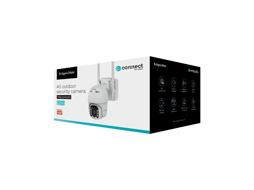 Camera wireless Kruger&Matz Connect C100 este completarea perfectă a echipamentului casei dumneavoastră inteligente. Dispozitivul poate fi conectat la internet prin modemul 4G încorporat, astfel încât să puteți gestiona funcțiile acestuia în aplicația TuyaSmart. Indiferent de locul în care vă aflați, puteți verifica oricând ce se întâmplă în curtea dumneavoastră.