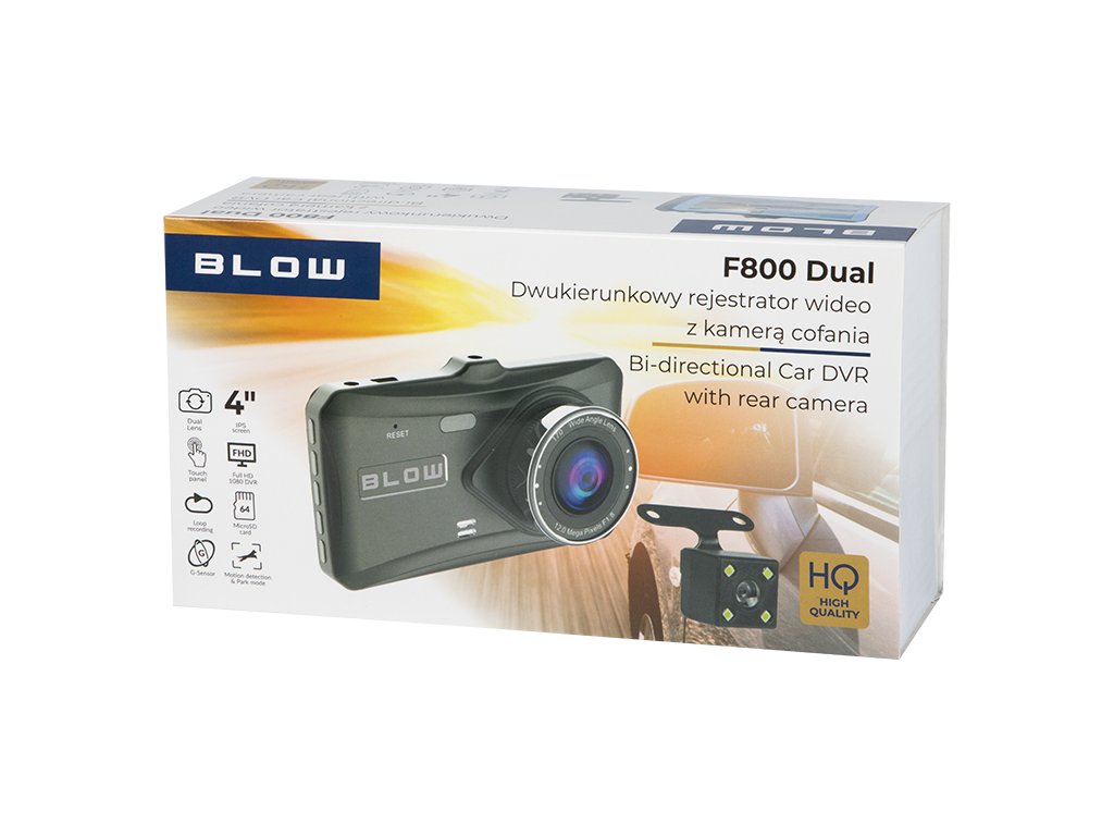 Videorecorderul Blackbox F800 cu cameră spate de la Blow este dispozitivul ideal pentru cei care apreciază calitatea înaltă a imaginii, prețul accesibil și fiabilitatea. Recorderul are un slot integrat pentru card microSD de până la 64GB și funcția de înregistrare în buclă.