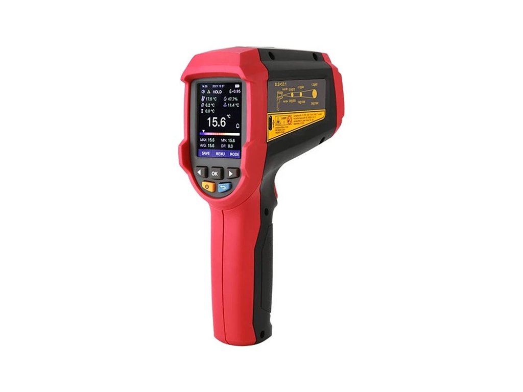 ±5% RH ±(0,005×t+1,5)°C, ±(0,005×t+3,0)°F ----------- PARAMETRI PRINCIPALI ------------ Raport D:S: 55:1 Emisivitate: Reglabilă (0,1-1) Sensibilitate spectrală: 1°F Rezoluție PDF: 0 µm, CSV0 : single, class II, <1 mW Memorie de înregistrare: 999 grupuri Afișaj: 2,4” TFT LCD Rezoluție: 320x240 px ----------- CARACTERISTICI GENERALE ------------ Priză de încărcare/comunicație: USB-C Clasă de protecție: IP65 Alimentare : 3,7 V litiu-ion 2600 mAh Dimensiuni: 205 x 65 x 124 mm Greutate: 375 g Accesorii: cablu USB tip C, termocuplu tip K Certificări: CE, UKCA