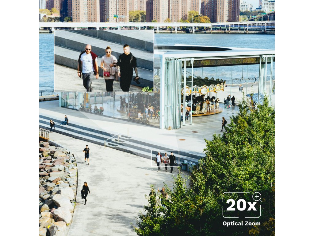 Camera C110 este echipată cu un zoom optic de 20x, care permite mărirea precisă a obiectelor aflate la distanțe mari. Datorită acestei funcții avansate, puteți monitoriza precis zona acoperită de cameră, chiar dacă se află departe.