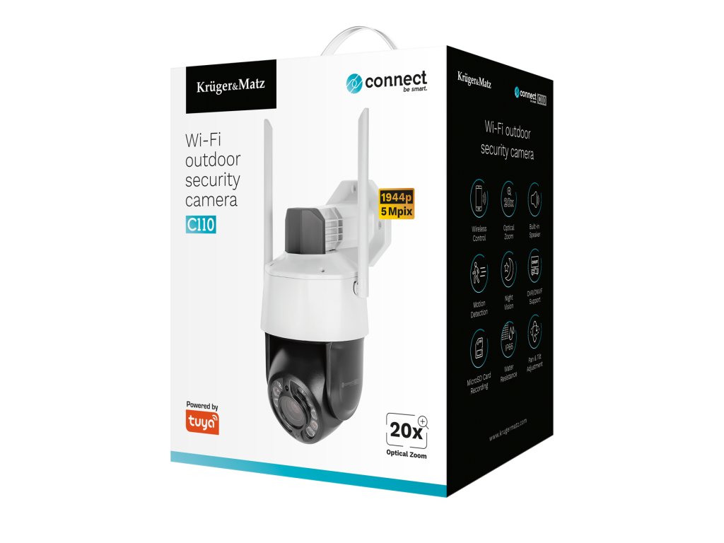 Camera wireless Kruger&Matz Connect C110 este completarea perfectă pentru echipamentul casei dumneavoastră inteligente. Datorită conectivității Wi-Fi, dispozitivul poate fi controlat cu ajutorul aplicației TuyaSmart, astfel încât, indiferent de locul în care vă aflați, puteți verifica în orice moment ce se întâmplă în curtea dumneavoastră.