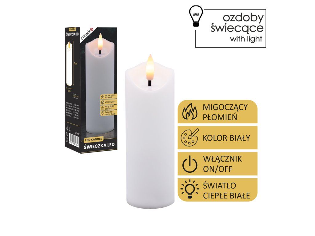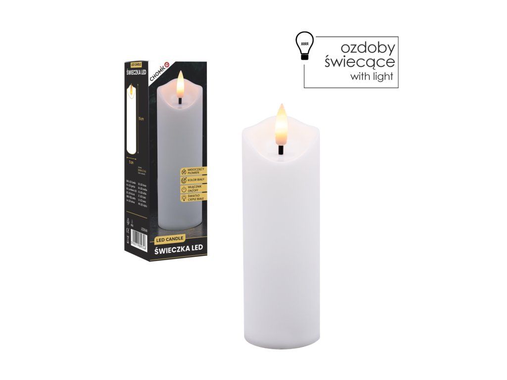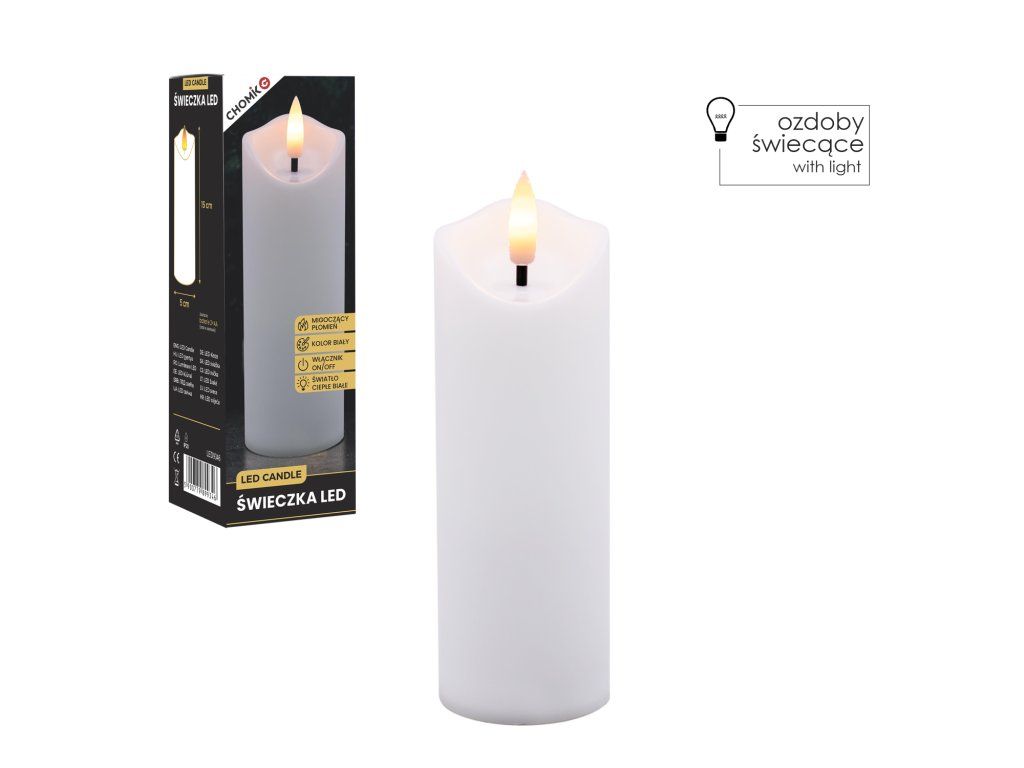 Cândela LED Albă 5 x 15 cm *9346