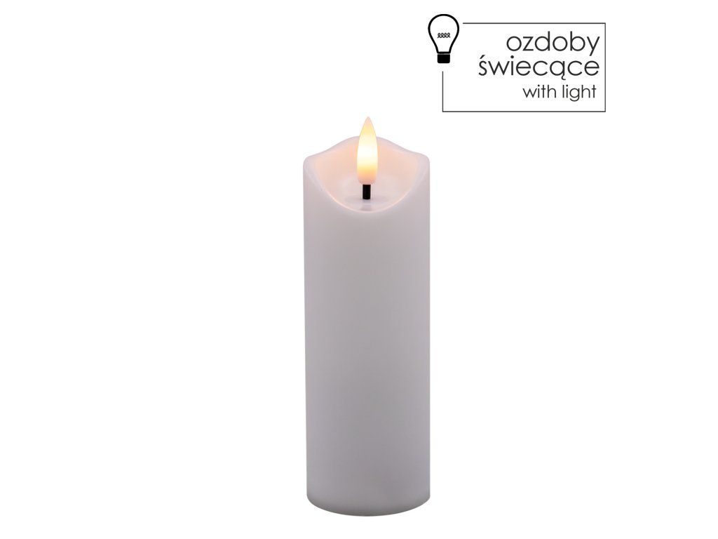 Candle LED din plastic cu flacără tremurândă în alb cald.O puteți folosi ca insertie pentru felinar sau ca decor pentru interiorul casei.