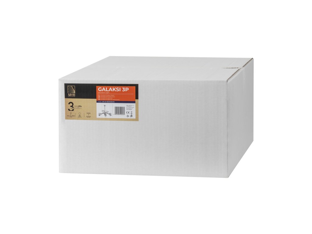 Modelul GALAKSI este menținut în stil modern. Forma neobișnuită a brațelor, combinată cu sticla fumurie, cu siguranță va adăuga originalitate și eleganță interioarelor de dimensiuni mici și medii. Produsul a fost fabricat în Polonia. Membru al familiei este și candelabrul cu șase lumini.